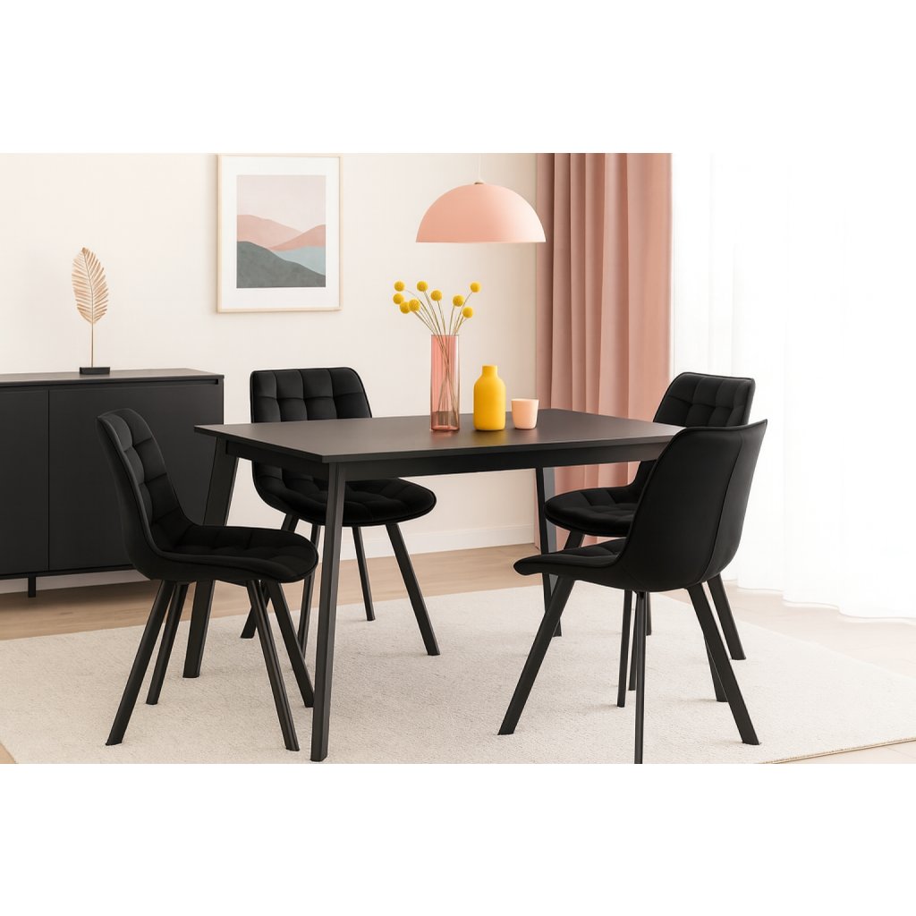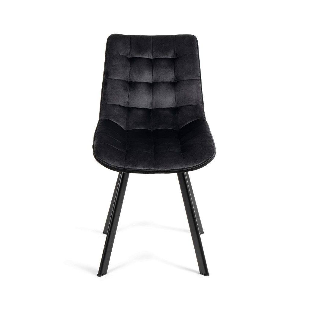 Jídelní židle v černém sametu nabízí kombinaci pohodlí a střídmého designu, který v interiéru působí klidně a elegantně. Sametová látka je měkká na dotek a v kombinaci s prošíváním sedáku vytváří příjemný vizuální i praktický dojem. Černé kovové nohy židli opticky odlehčují a zároveň zajišťují pevnost a stabilitu. Díky ergonomickému tvaru opěrky i sedáku je vhodná pro každodenní použití – v jídelně, kuchyni nebo i domácí pracovně. Židle snadno zapadne do interiérů, kde dominuje jednoduchost, kontrast nebo neutrální paleta barev.