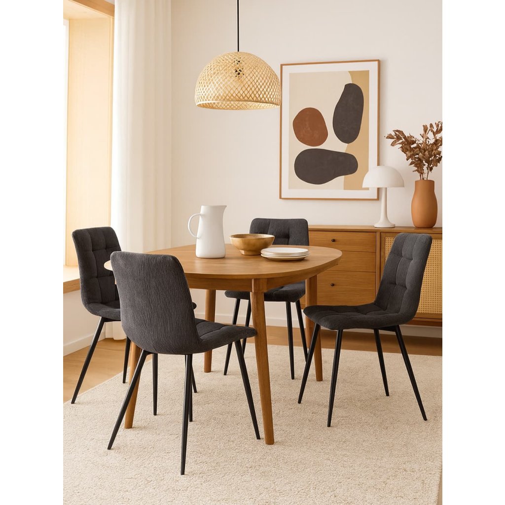 45;52;85; Moderní židle s elegantním designem. Pohodlné čalounění v tmavě šedé barvě s dekorativními knoflíky. Stabilní nohy v dekoru dřeva pro přírodní vzhled. Vhodná do...