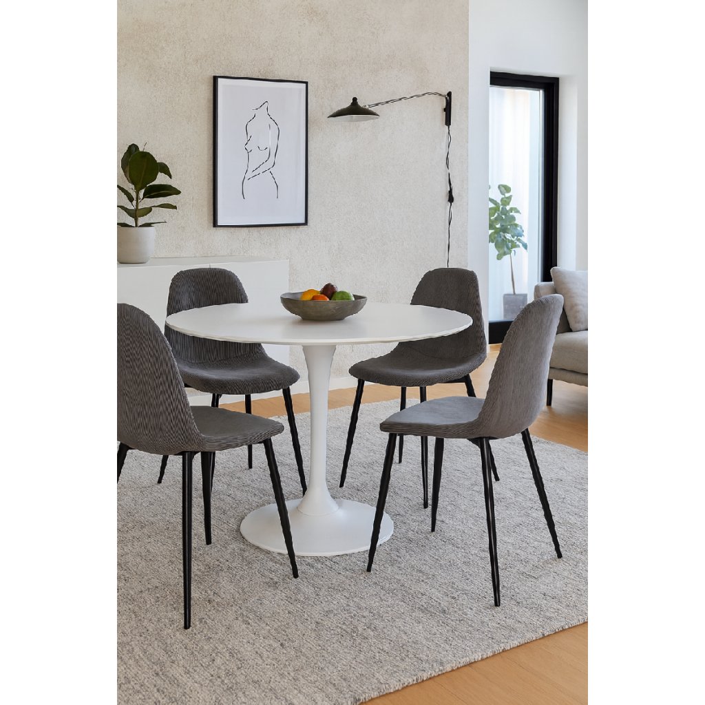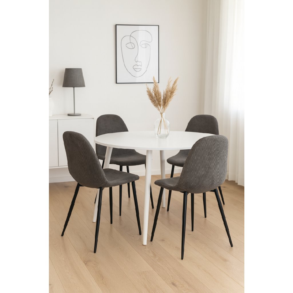 Elegantní židle s moderním minimalistickým vzhledem. Pohodlné čalounění v šedém manšestrovém provedení. Stabilní kovové nohy v černém provedení. Ideální doplněk do jídelny, kuchyně i pracovny. Spojuje komfort, nadčasový design a odolnost.
