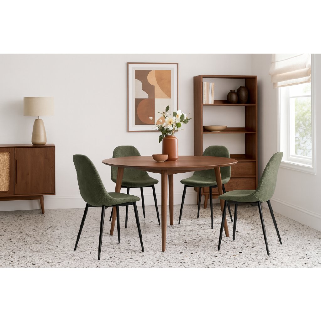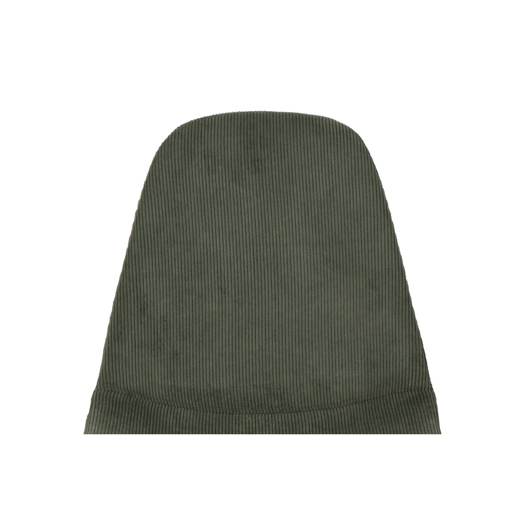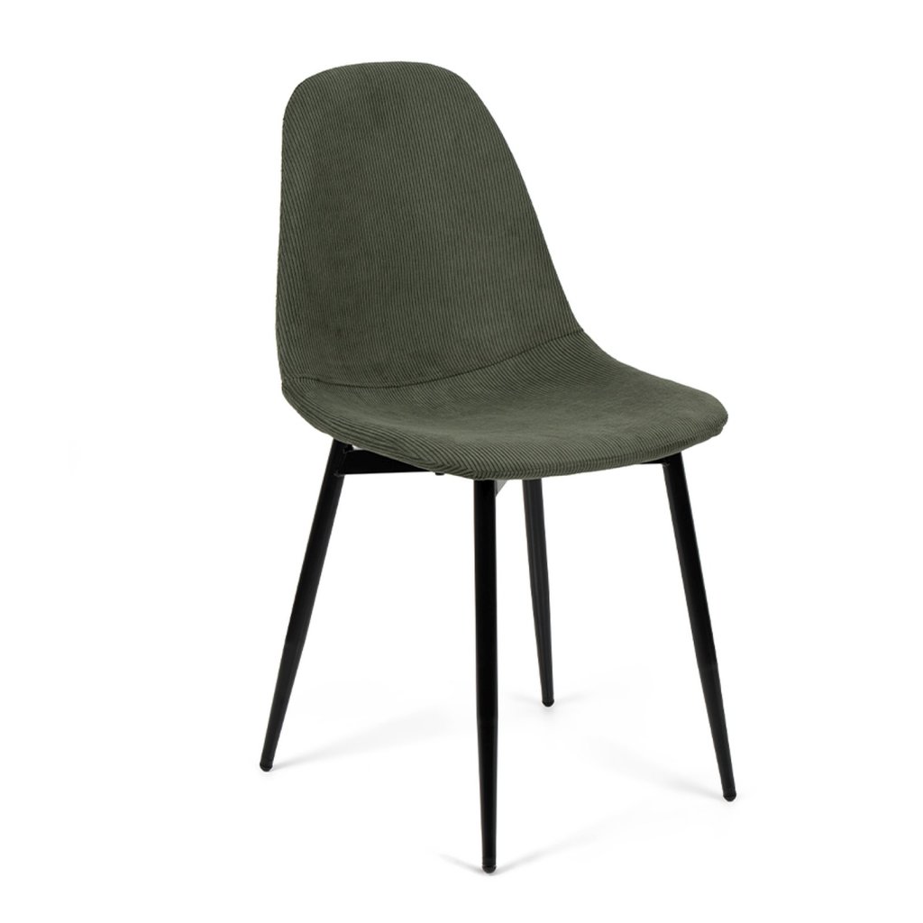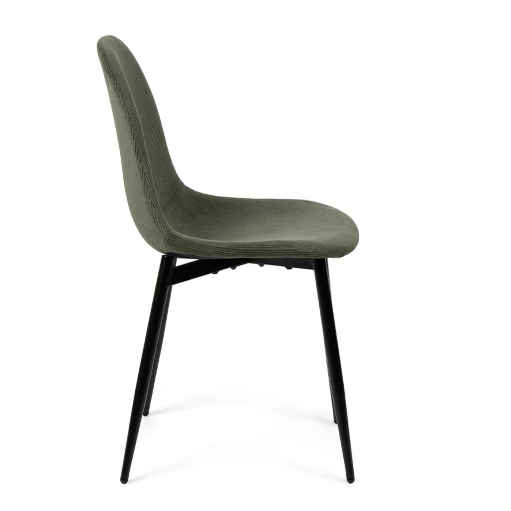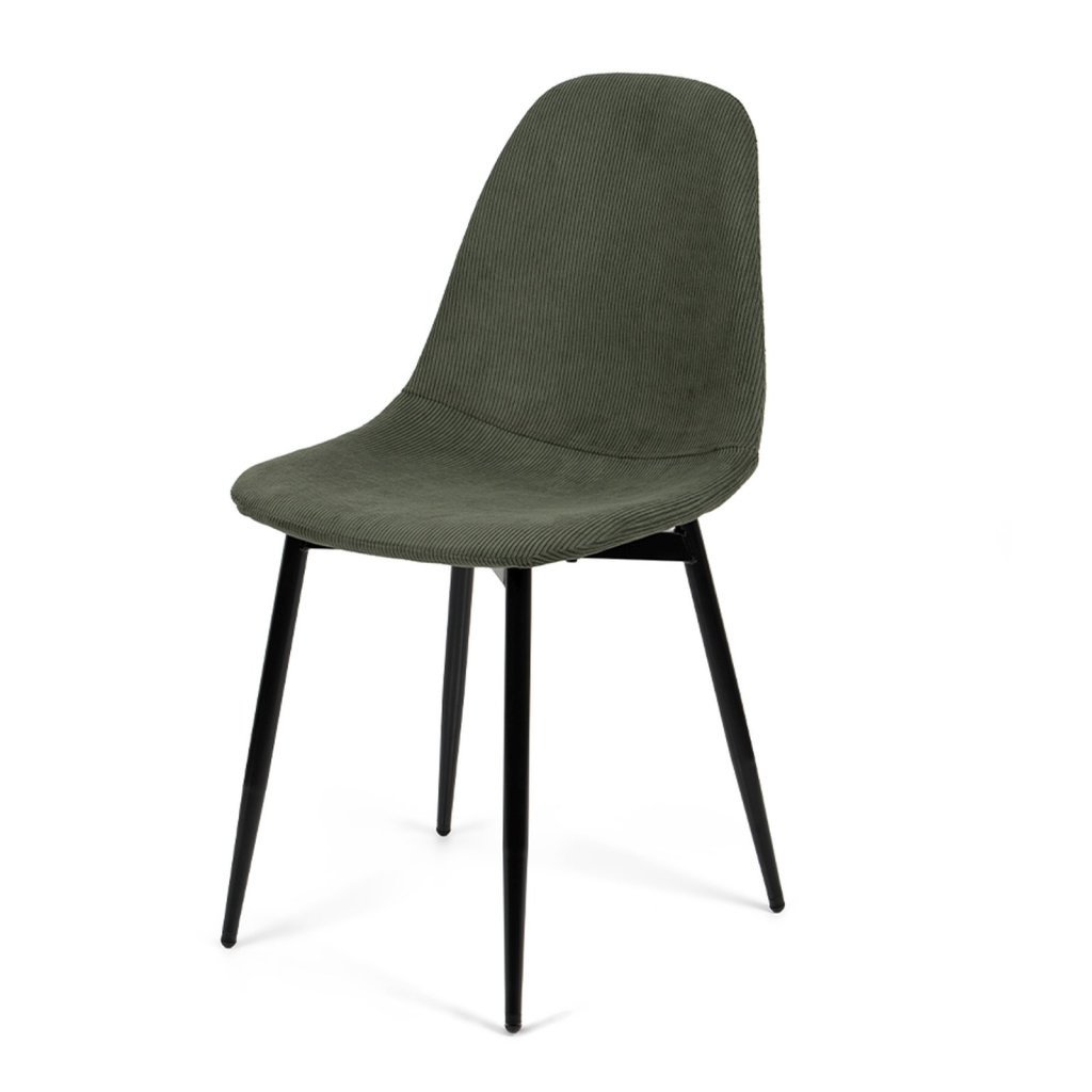 Elegantní židle s moderním minimalistickým designem. Pohodlné čalounění v tmavě zeleném manšestrovém provedení. Stabilní kovové nohy v černé barvě. Ideální do jídelny, pracovny či moderního interiéru. Spojení komfortu, stylu a odolnosti