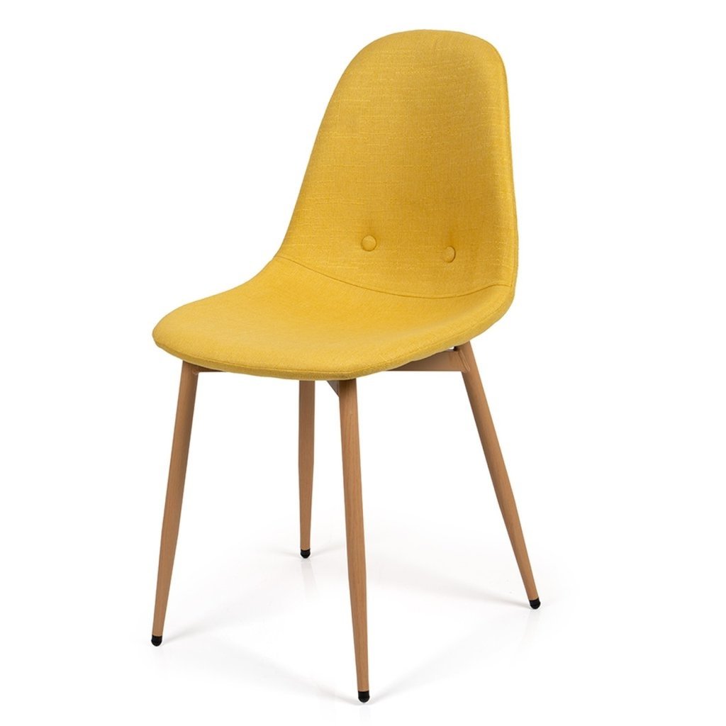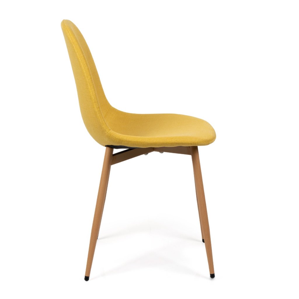 Svěží a moderní design. Pohodlné polstrované sedátko v sytě žluté barvě. Stabilní dřevěné nohy s minimalistickým vzhledem. Stylový prvek do kuchyně, jídelny či pracovny. Kombinace komfortu, barevné hravosti a elegance.