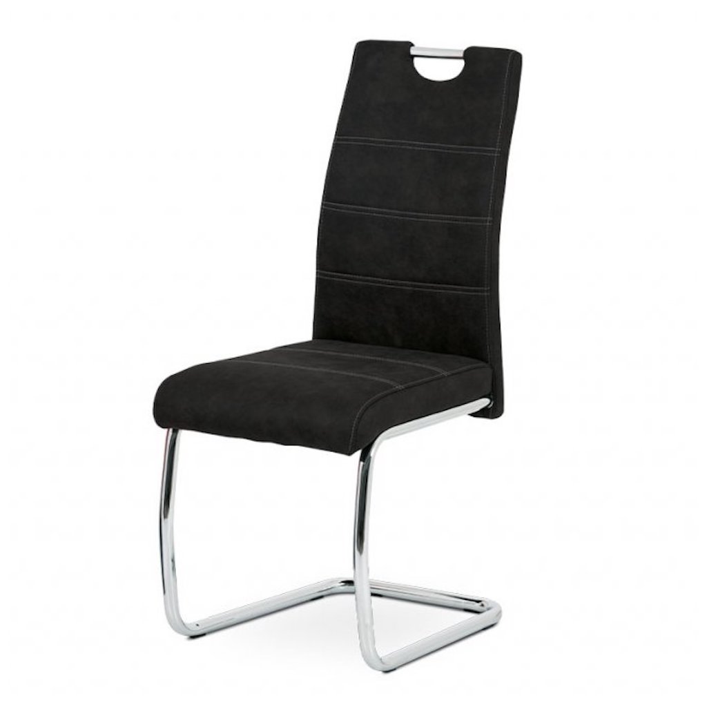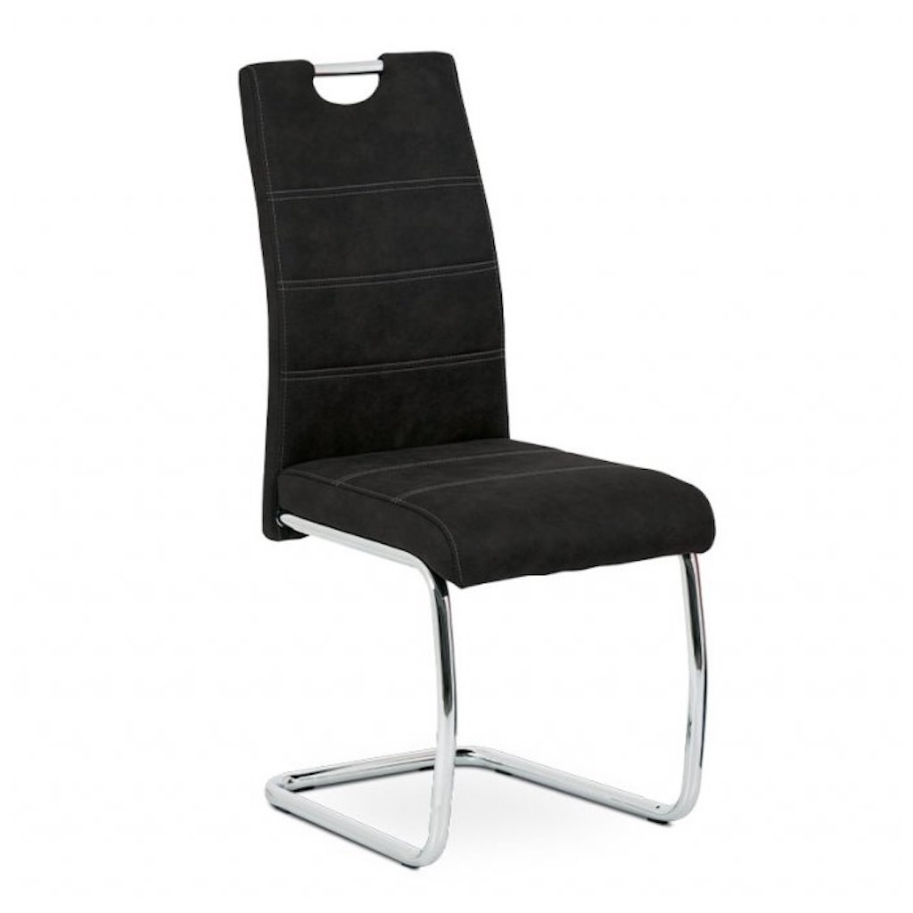 Jídelní židle - černá látka Cowboy v dekoru broušené kůže, kovová chromovaná podnož AJZ176C