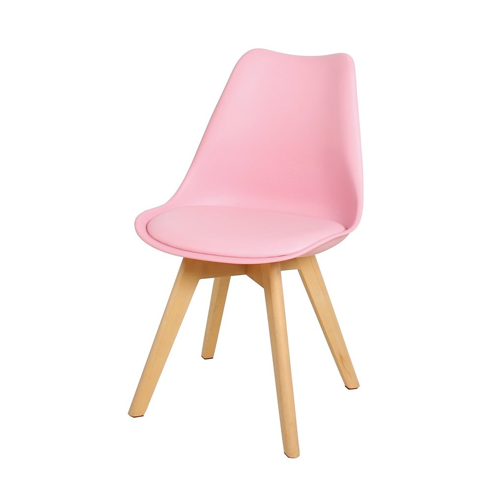 Elegantní čalouněná židle s ergonomickým tvarem. Zajímavě řešená dřevěná konstrukce je v barvě buk, sedák s opěradlem jsou z kvalitního pevného PP plastu ( polypropylen + polyuretan ). Sedák navíc obsahuje polštářek z ekokůže. Barevné provedení - růžová. Nohy židle mají zpevňující kovový kříž, který podstatně přispívá ke stabilitě a odolnosti židle.