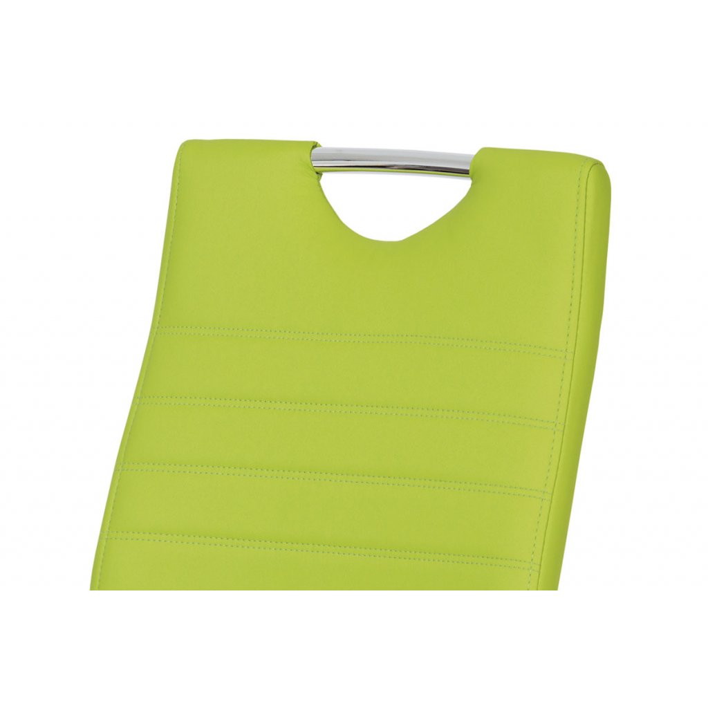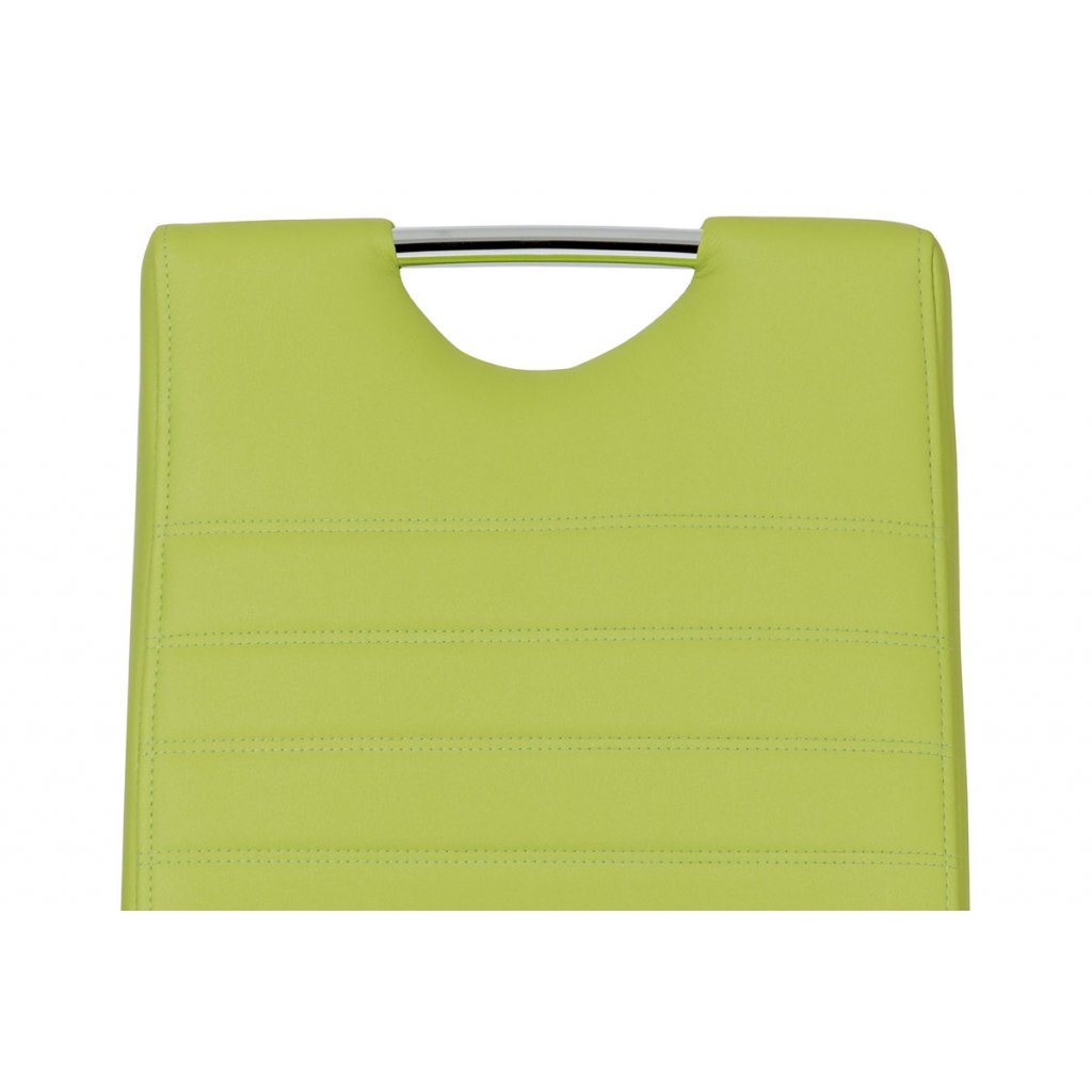 Židle je očalouněná limetkově zelenou koženkou s prošitím na opěráku.