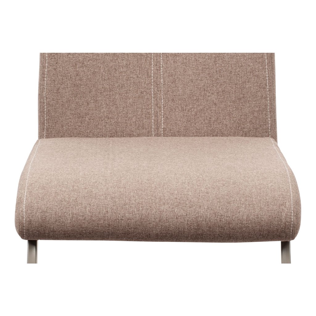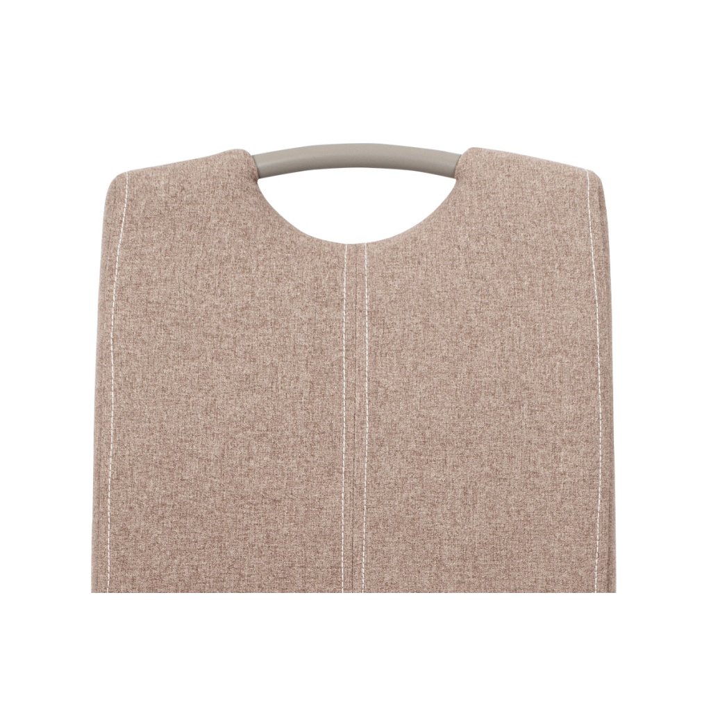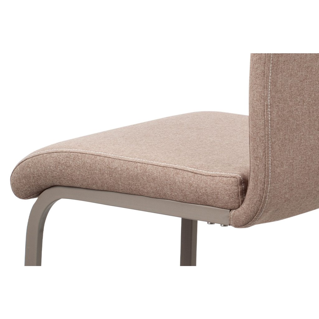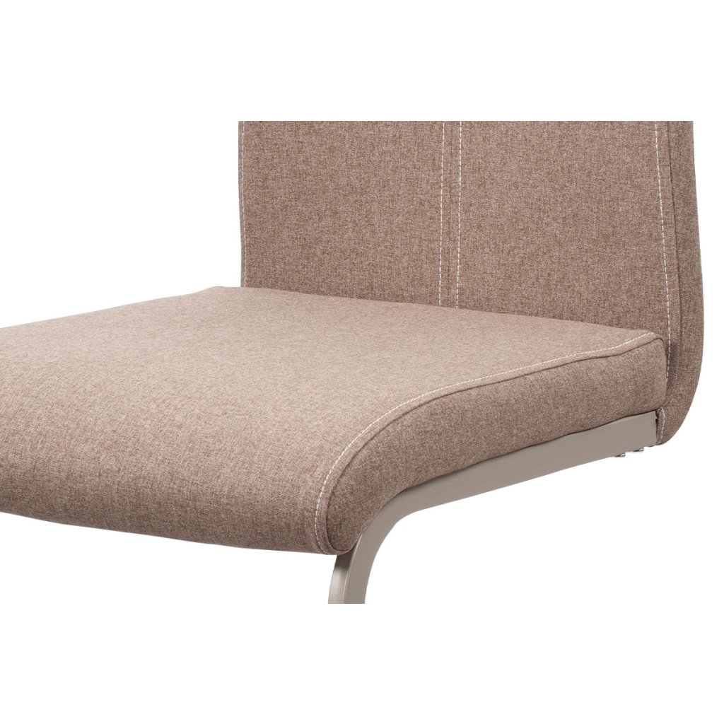 Jídelní židle s pohupovací podnoží čalouněná látkou v lanýžové barvě.