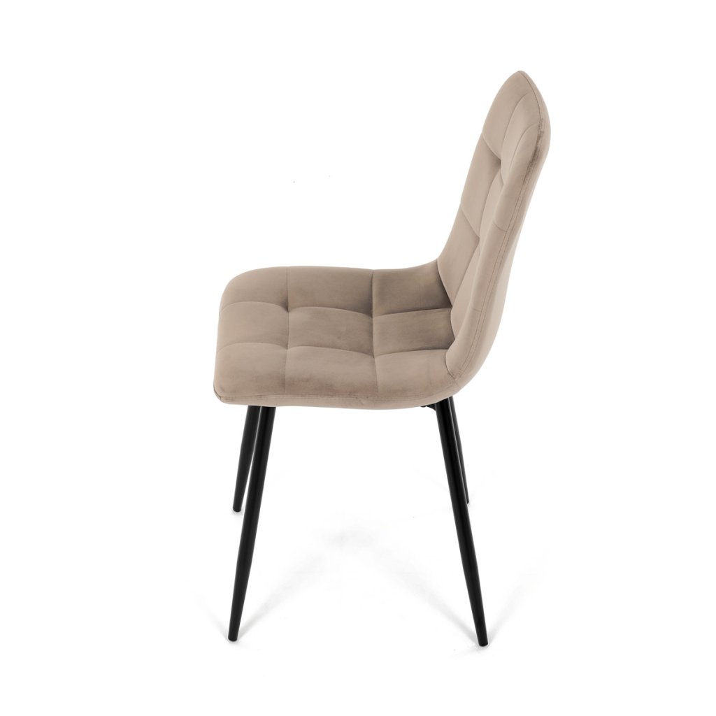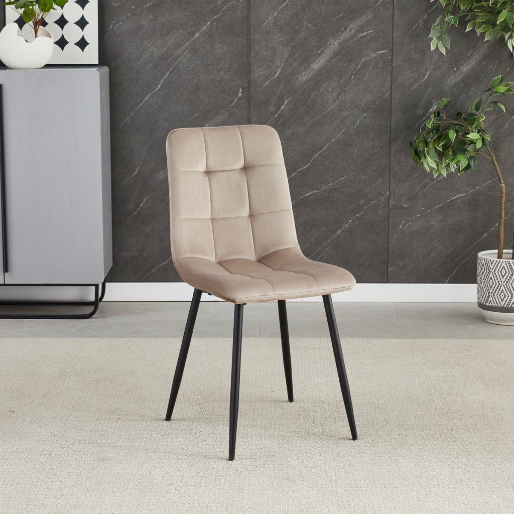 Jídelní židle v elegantní krémové barvě je ideální volbou pro stylové interiéry. Čalounění ze sametové látky působí luxusně a zajišťuje pohodlí při sezení. Decentní prošívání zdůrazňuje precizní zpracování, zatímco stabilní černé kovové nohy podtrhují minimalistický vzhled s industriálním nádechem. Díky kvalitnímu polstrování z PU pěny je vhodná pro každodenní stolování i delší posezení. Tato židle přináší harmonii mezi funkčností a moderním designem, který oživí každou jídelnu.