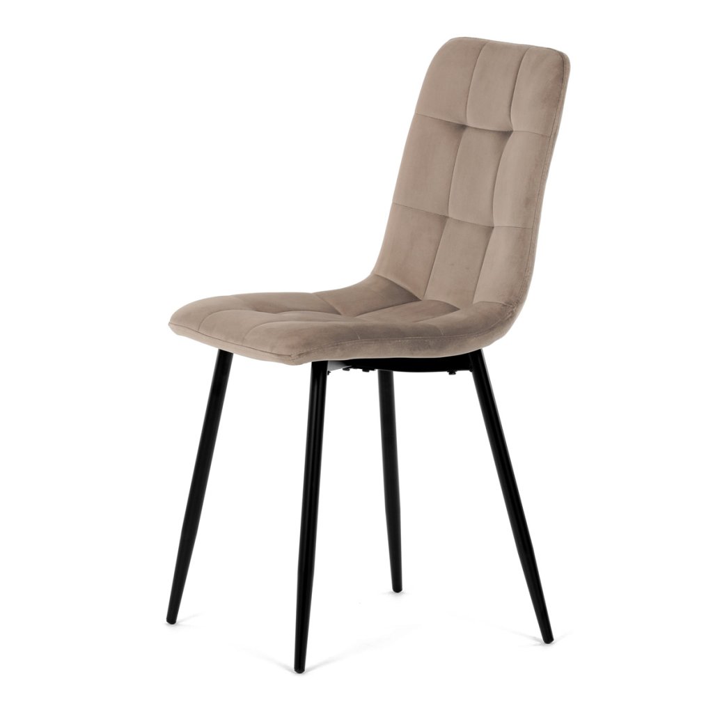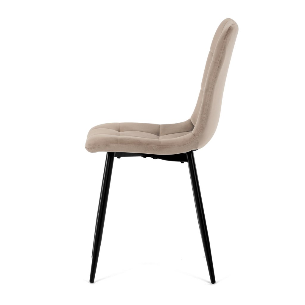 Židle jídelní, krémová sametová látka, nohy černý kov AJZ213KS. Jídelní židle v elegantní krémové barvě je ideální volbou pro stylové interiéry. Čalounění ze sametové látky působí luxusně a zajišťuj...