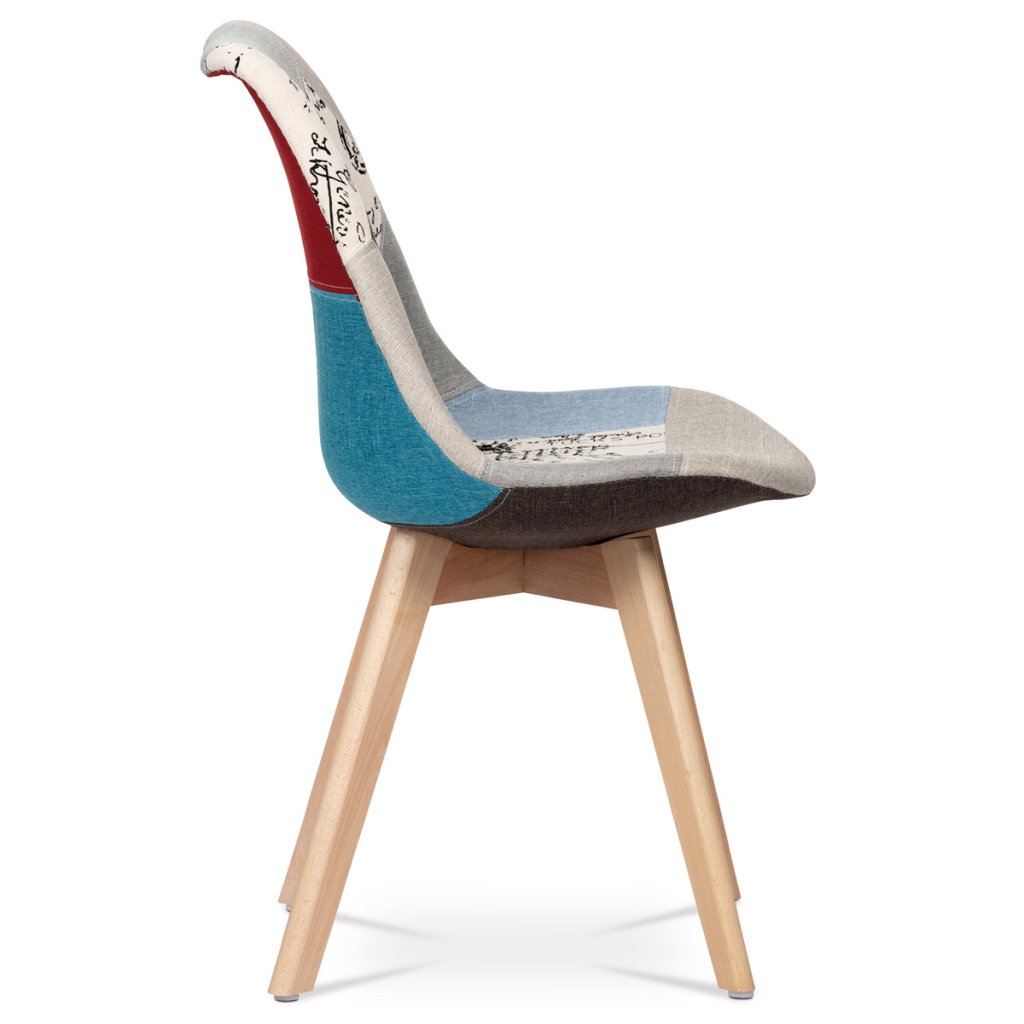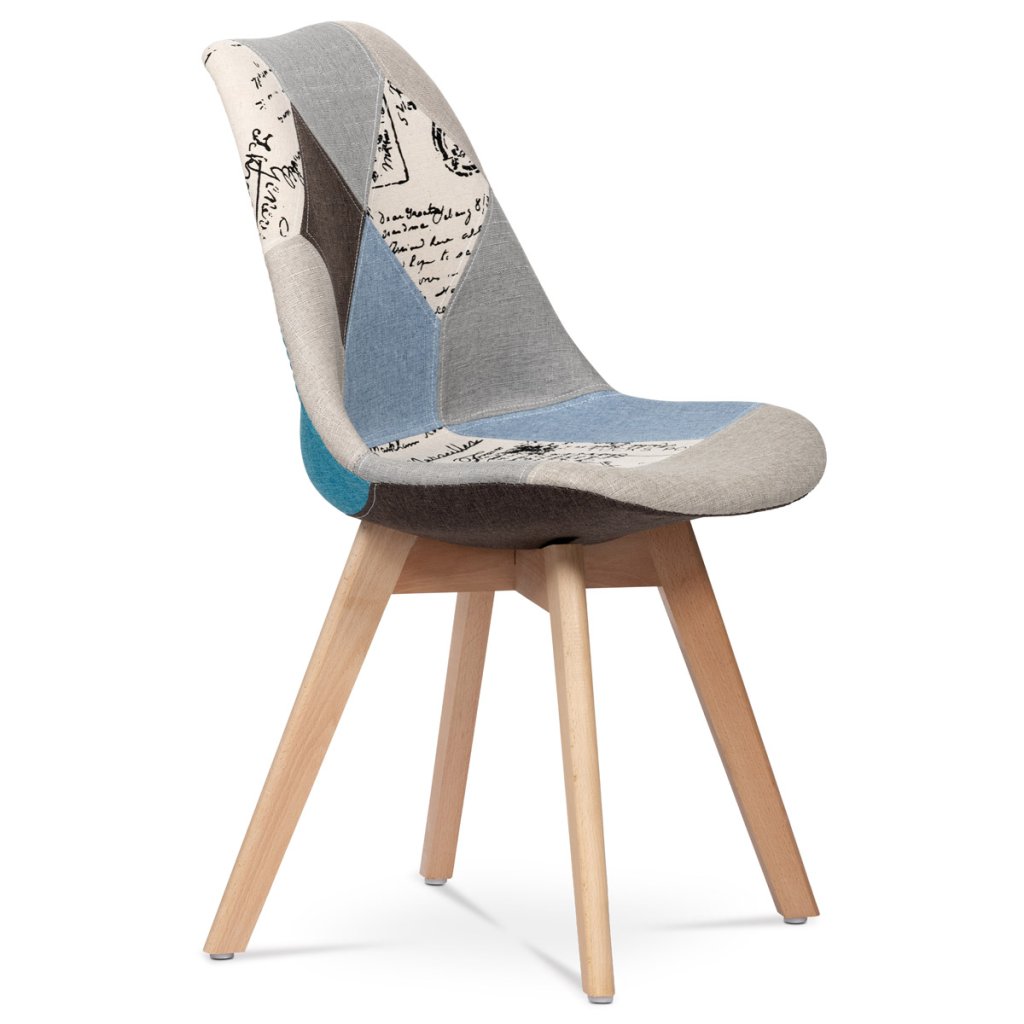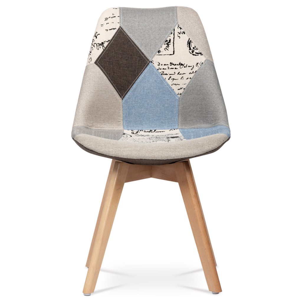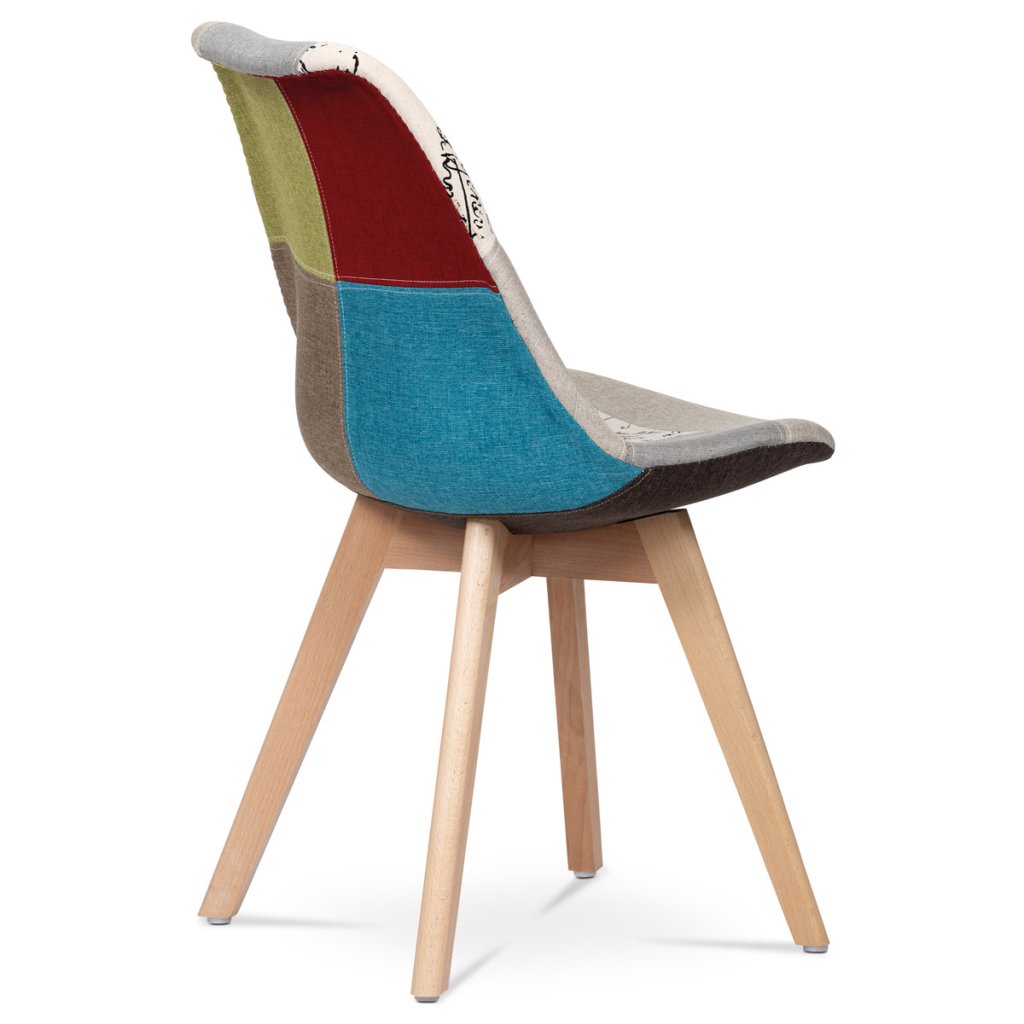 Jídelní židle, potah látka patchwork, dřevěné nohy, masiv přírodní buk AJZ140PW