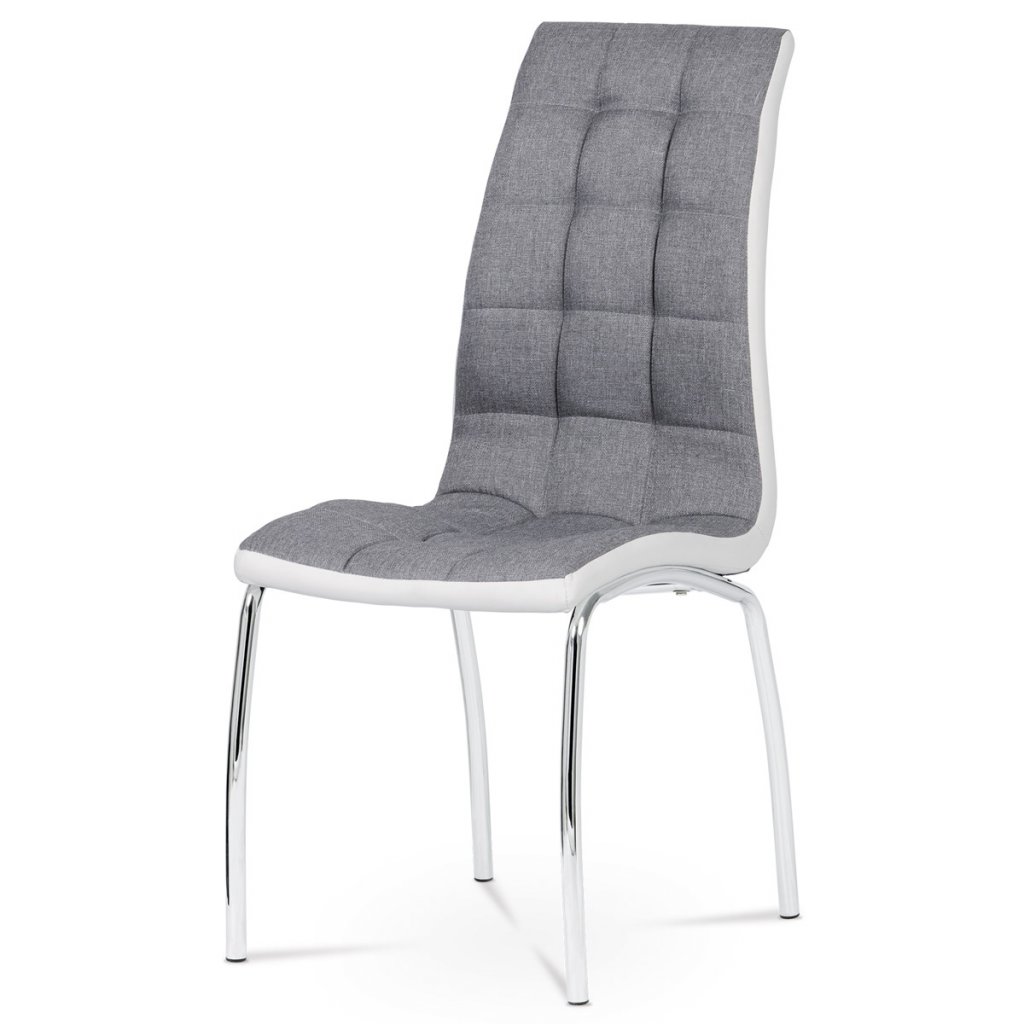 Jídelní židle potah šedá látka a bílá ekokůže podnož chrom AJZ163S