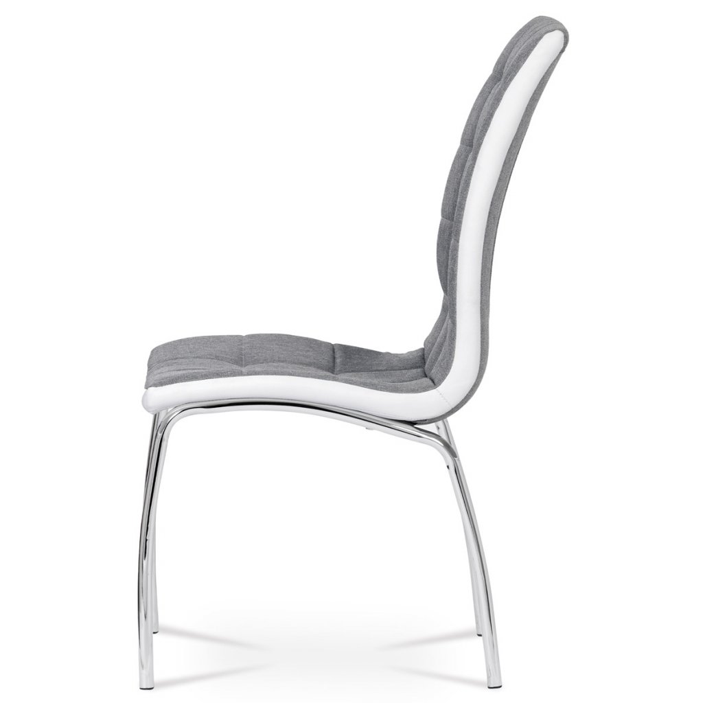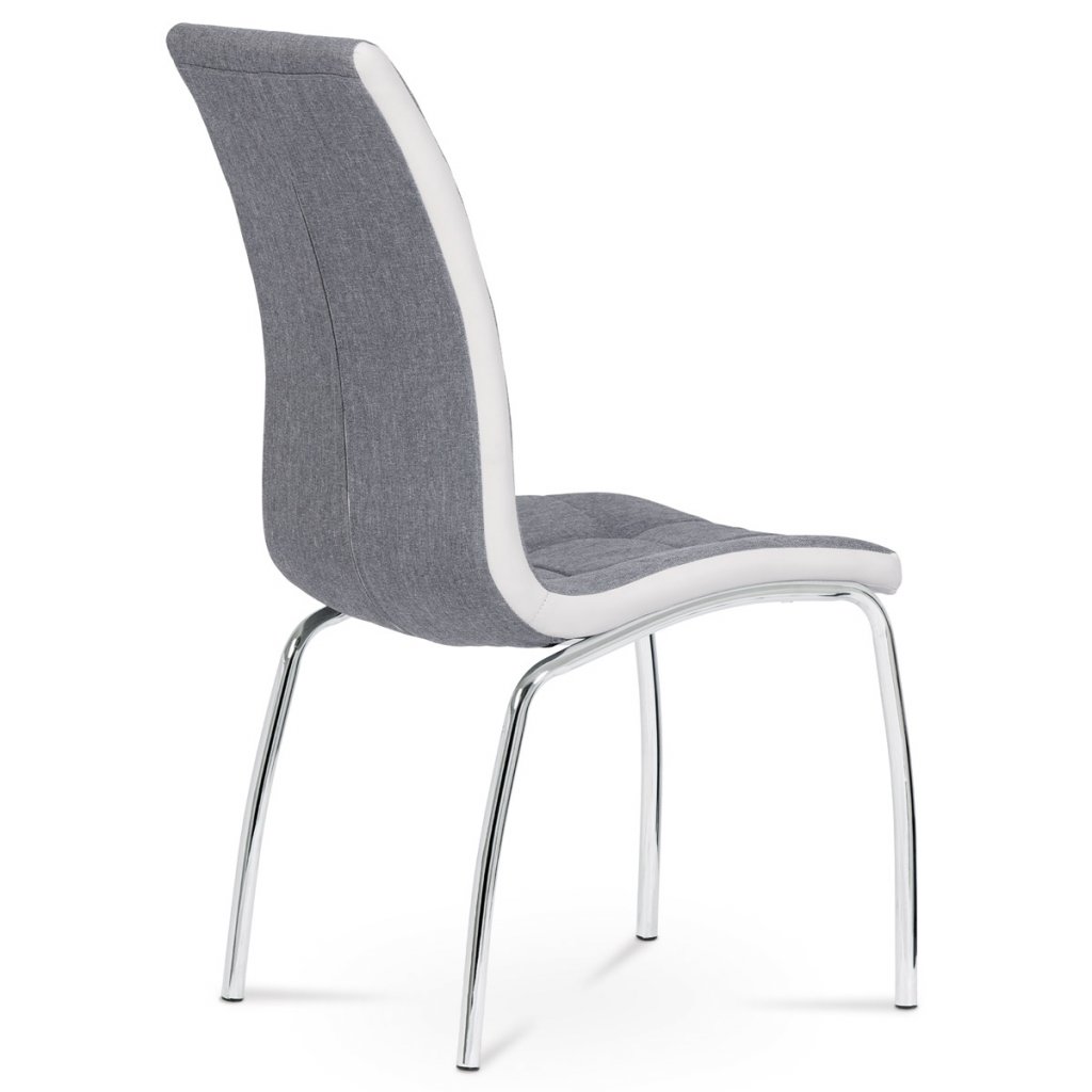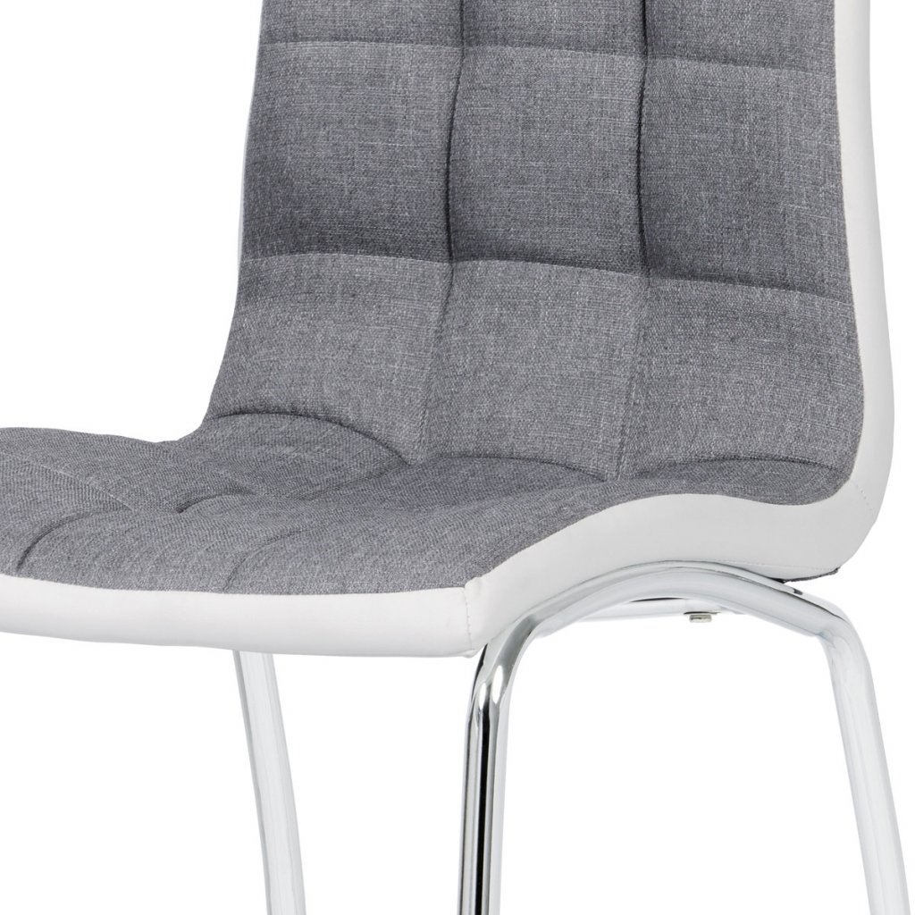 Jídelní židle potah šedá látka a bílá ekokůže podnož chrom AJZ163S