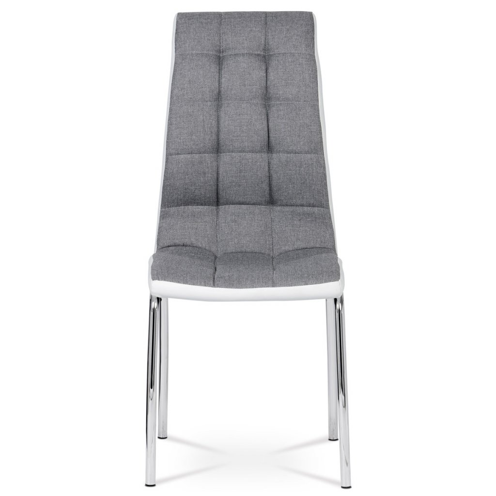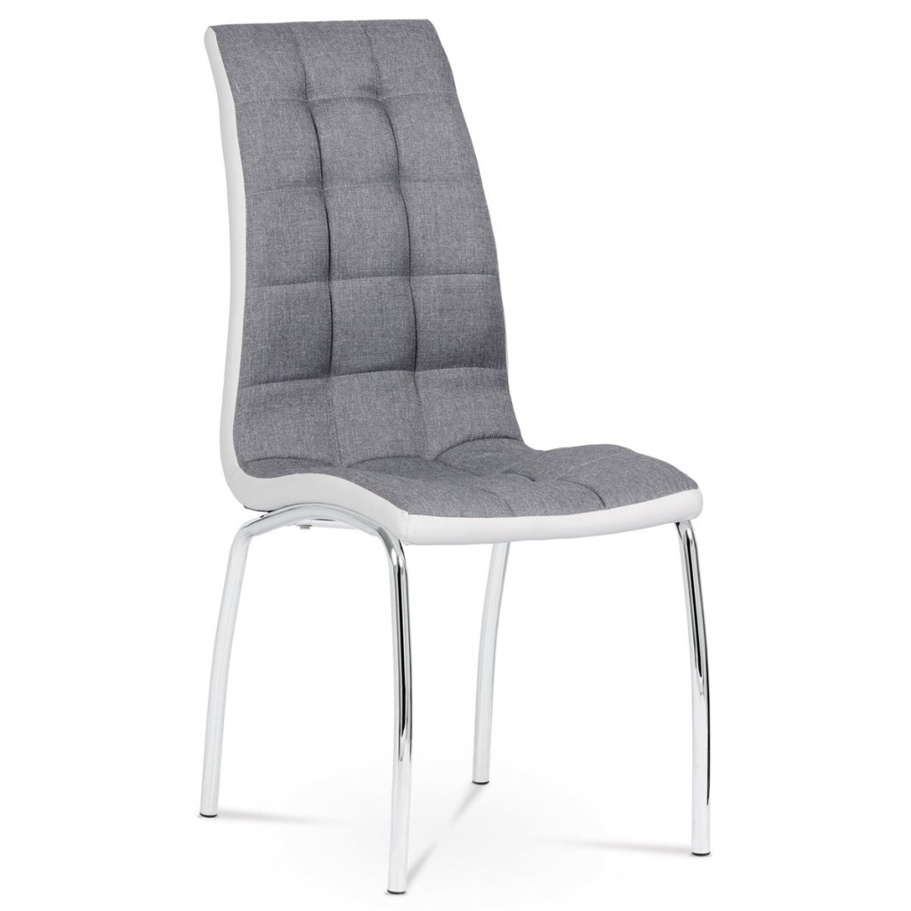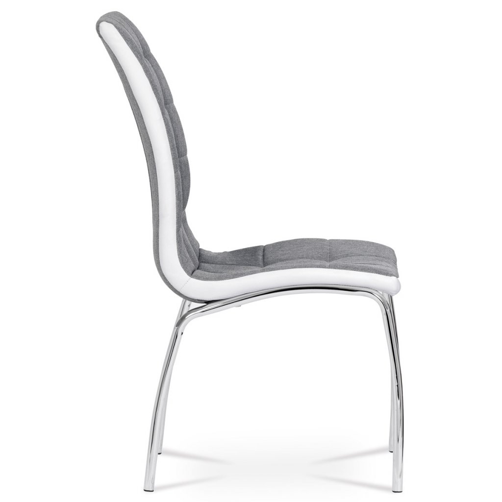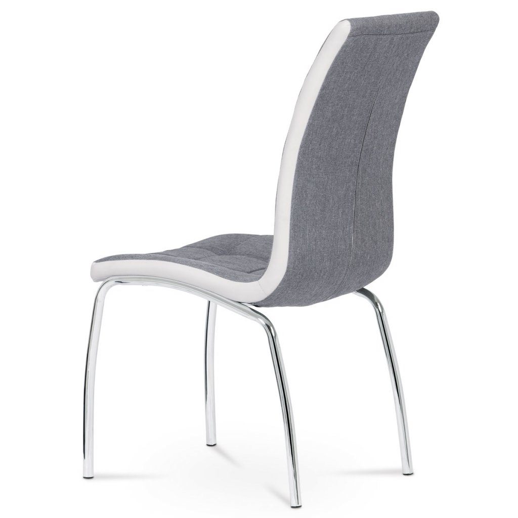 Jídelní židle potah šedá látka a bílá ekokůže podnož chrom AJZ163S