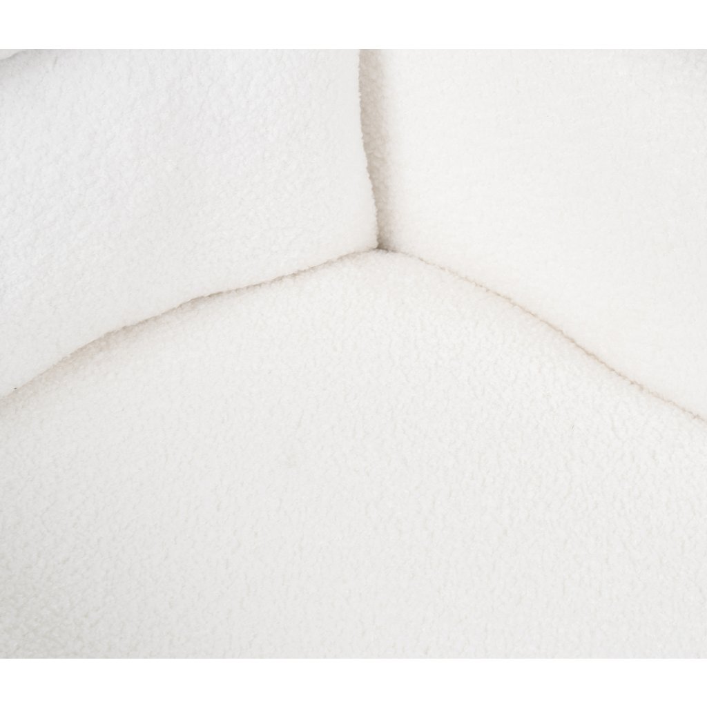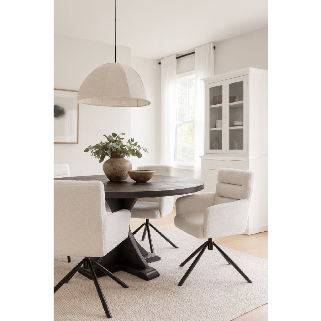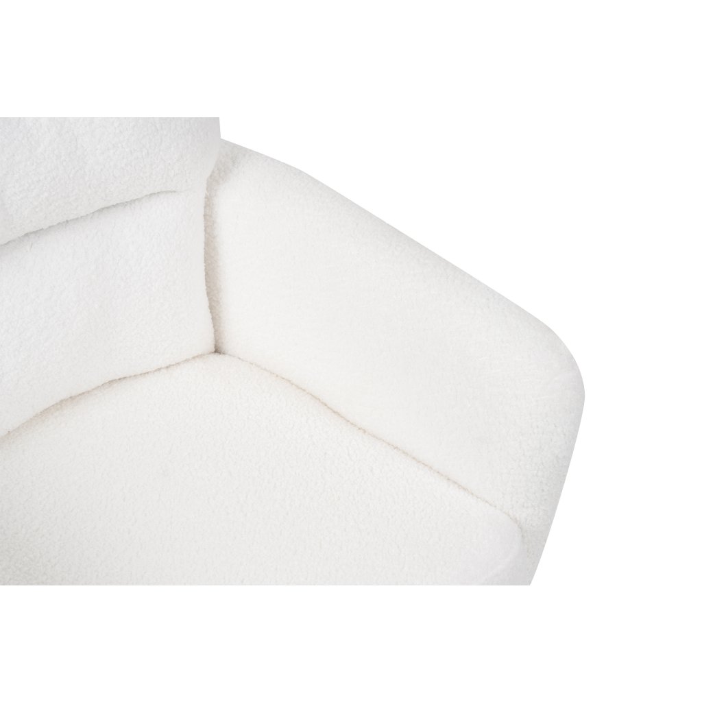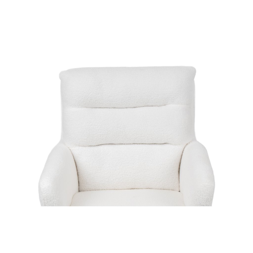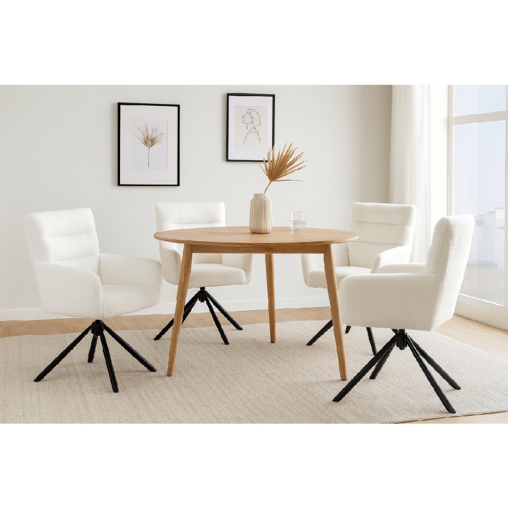 Moderní otočná židle s područkami a elegantním vzhledem. Pohodlné čalounění v bílé látce s měkkým povrchem. Stabilní kovová podnož s otočnou funkcí. Skvěle se hodí do jídelny, pracovny i kanceláře. Spojuje komfort, luxusní design a nadčasovou eleganci.