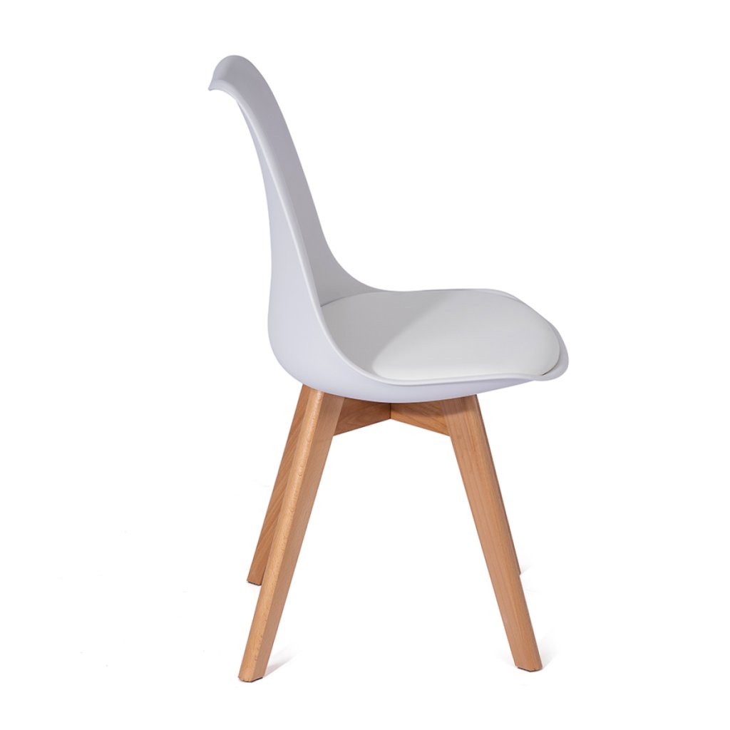 Elegantní, nadčasová a pohodlná – tato jídelní židle s bukovými nohami se skvěle hodí do moderních i skandinávských interiérů. Spojuje lehkou plastovou skořepinu v čistě bílé barvě s přírodním dřevem, čímž vytváří harmonický kontrast tepla a minimalismu.