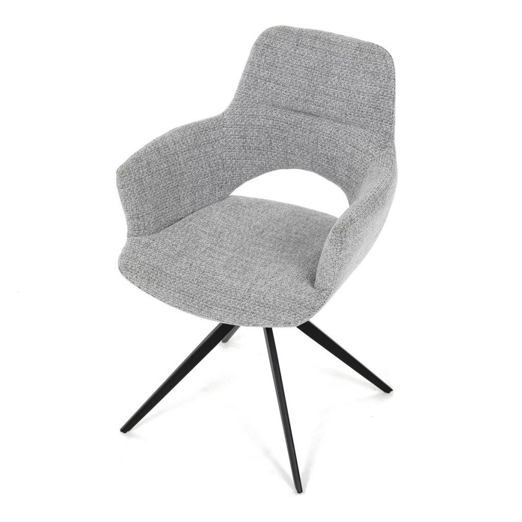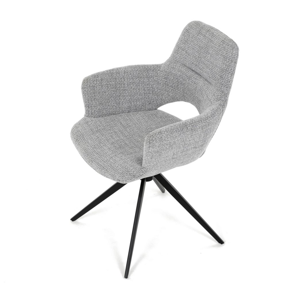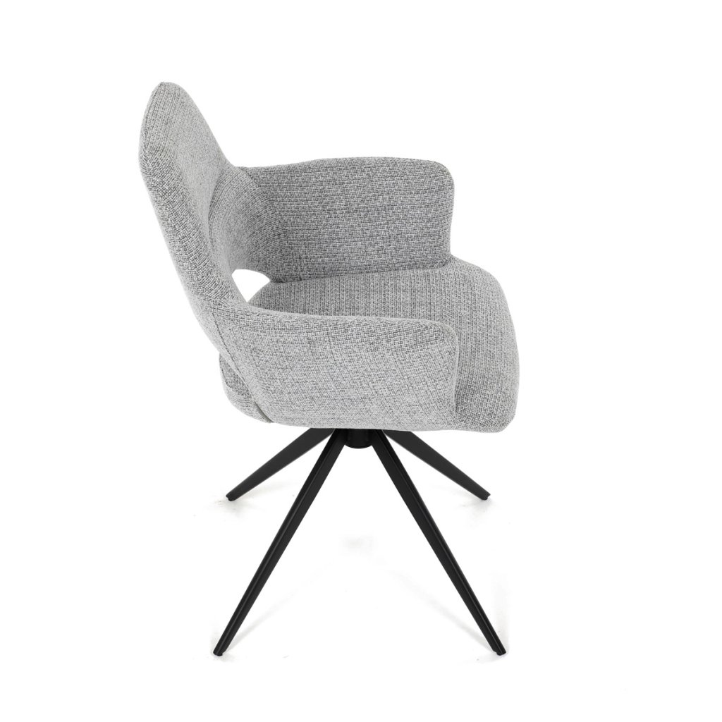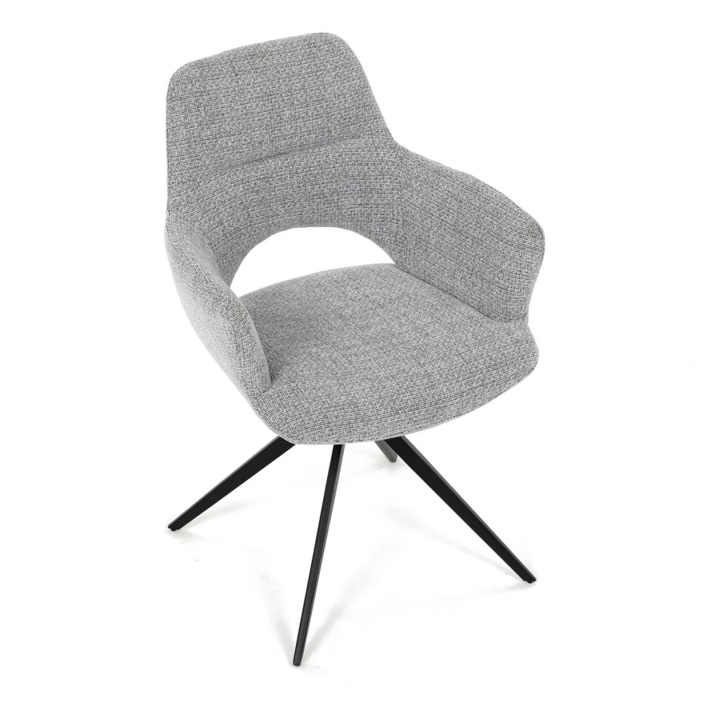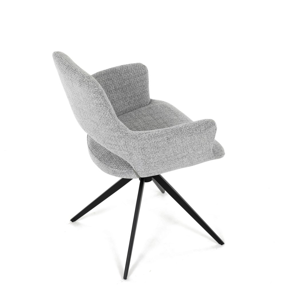 Elegantní jídelní židle v šedé barvě je kombinací moderního designu a maximálního pohodlí. Měkké čalounění z kvalitní látky s výplní z PU pěny zajišťuje komfortní sezení. Praktické područky a vratný otočný mechanismus 360° umožňují snadné otáčení a navrácení židle do původní polohy. Stabilní kovová základna v černé barvě dodává židli pevnost a stylový vzhled. Tato židle je ideální pro jídelny, které hledají elegantní a funkční doplněk pro každodenní stolování.