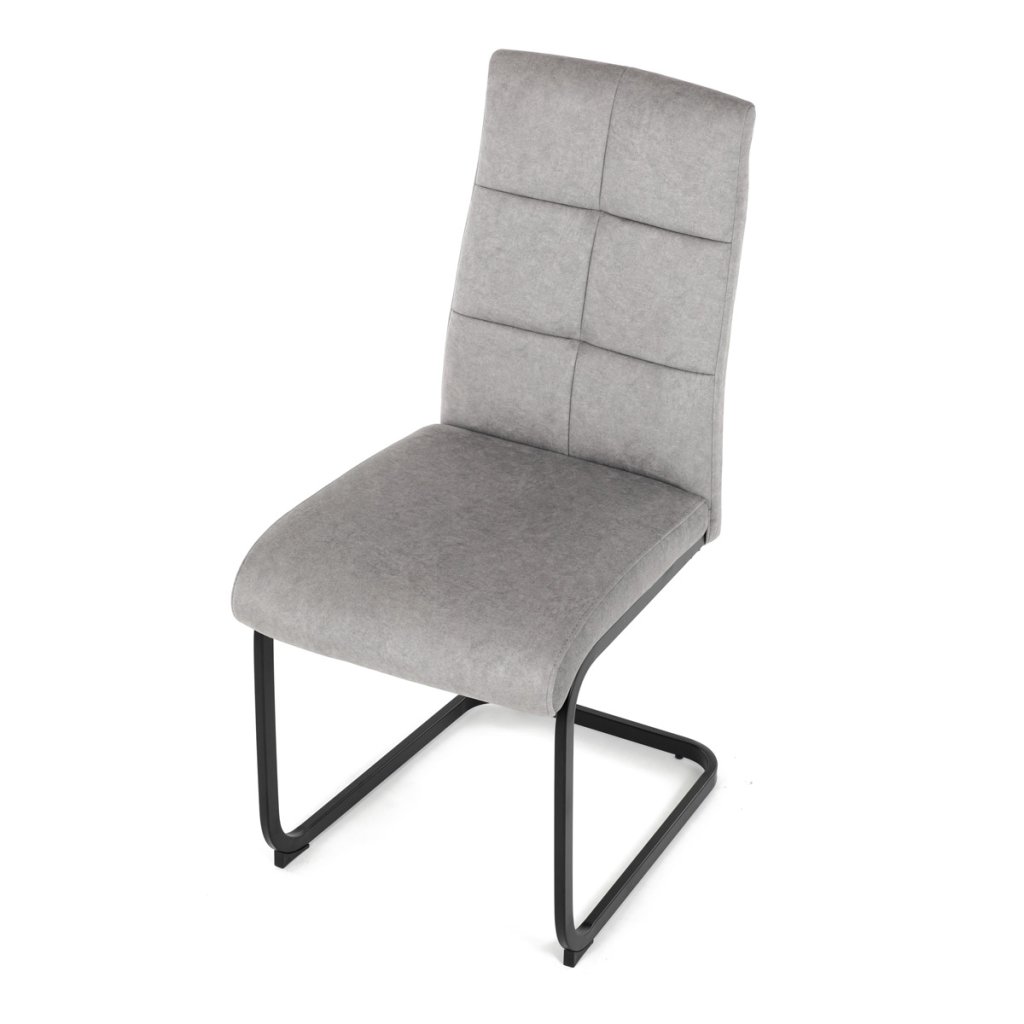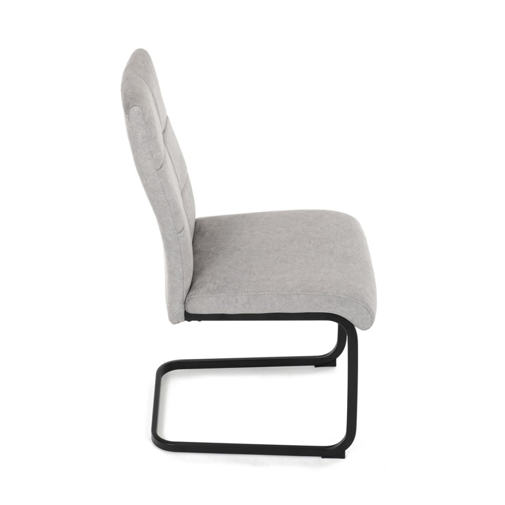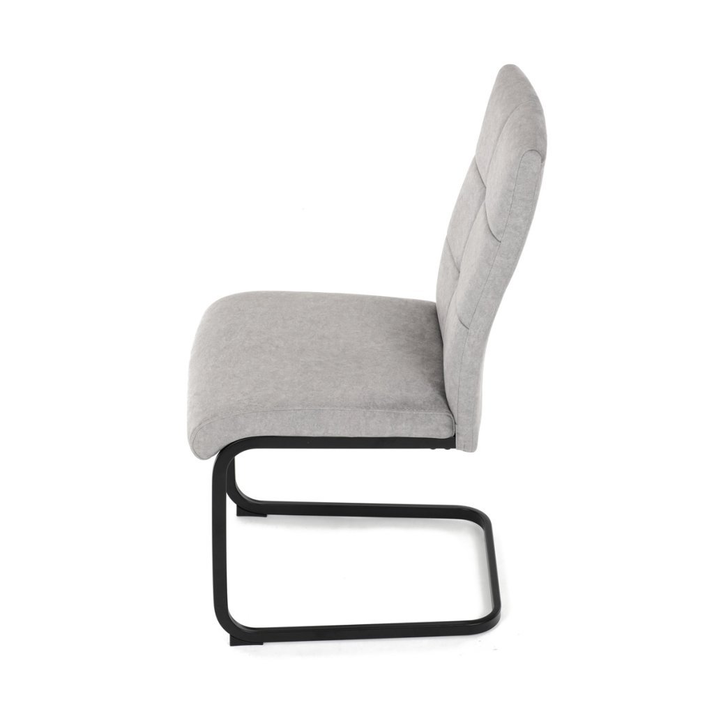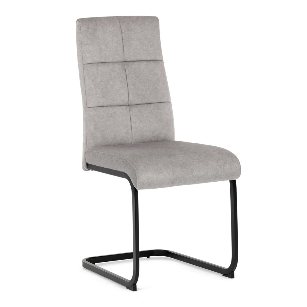 Moderní jídelní židle ve světle šedé barvě zaujme svým elegantním designem a kvalitním matným sametovým čalouněním, které je příjemné na dotek. Pohupová podnož z černého kovu dodává stabilitu a současně stylový vzhled. Ergonomicky tvarované sedadlo a opěradlo zaručují pohodlí i při delším sezení. Tato židle je ideální volbou do moderních interiérů, kde přispěje k vytvoření sofistikované a útulné atmosféry. Perfektní spojení funkčnosti a designu pro vaši jídelnu.