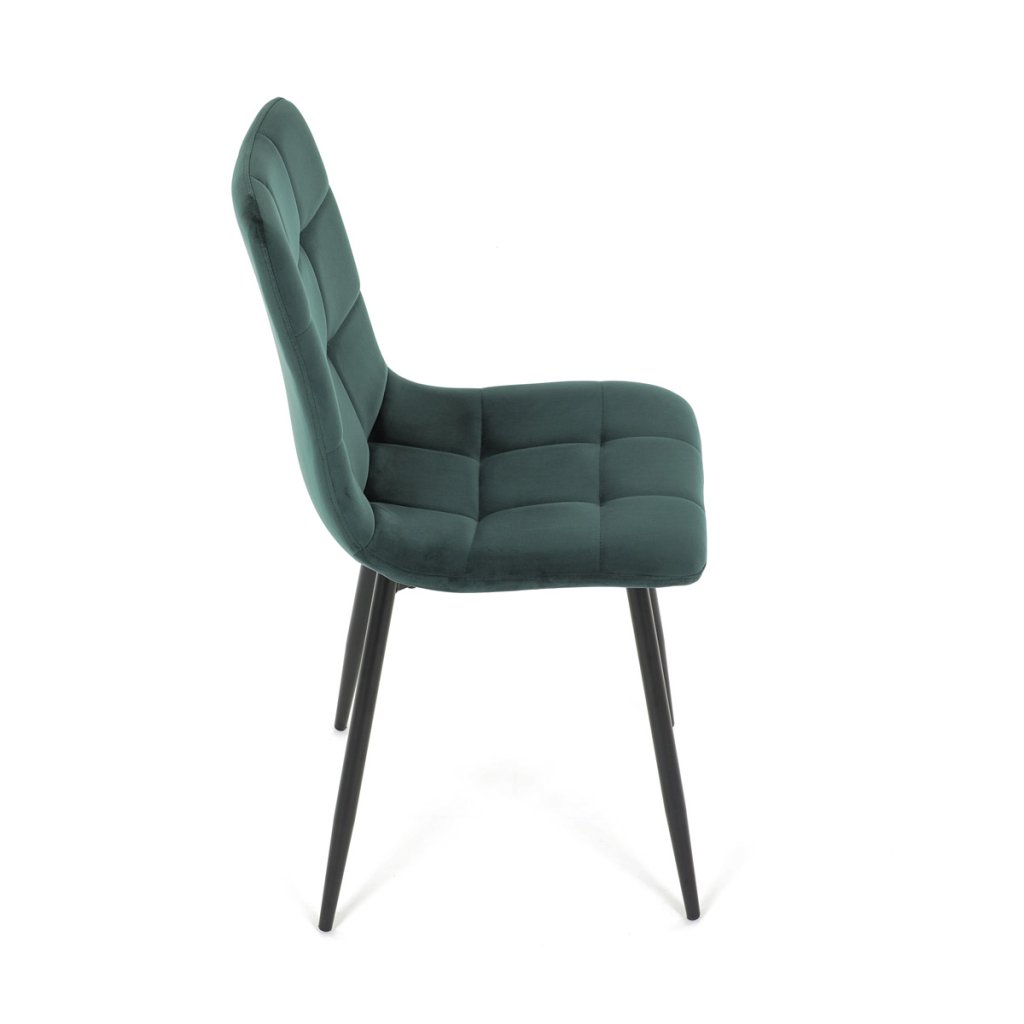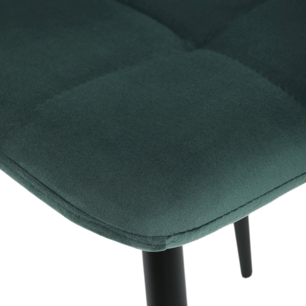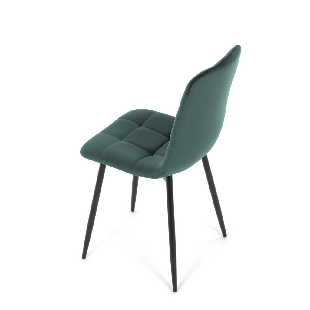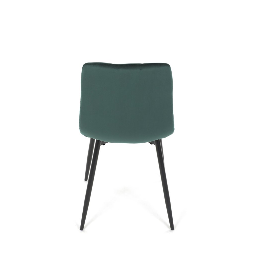 Jídelní židle v elegantní zelené barvě je ideální volbou pro stylové interiéry. Čalounění ze sametové látky působí luxusně a zajišťuje pohodlí při sezení. Decentní prošívání zdůrazňuje precizní zpracování, zatímco stabilní černé kovové nohy podtrhují minimalistický vzhled s industriálním nádechem. Díky kvalitnímu polstrování z PU pěny je vhodná pro každodenní stolování i delší posezení. Tato židle přináší harmonii mezi funkčností a moderním designem, který oživí každou jídelnu.