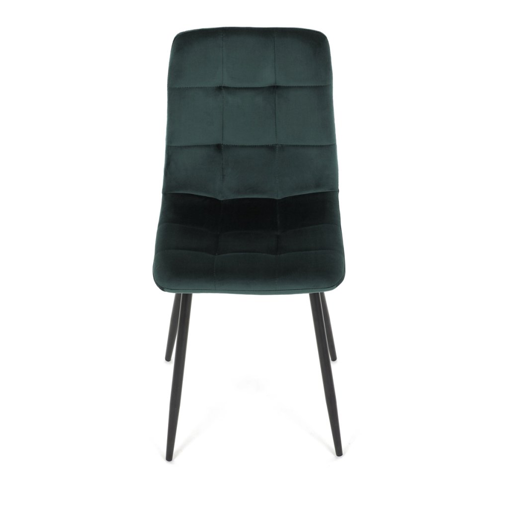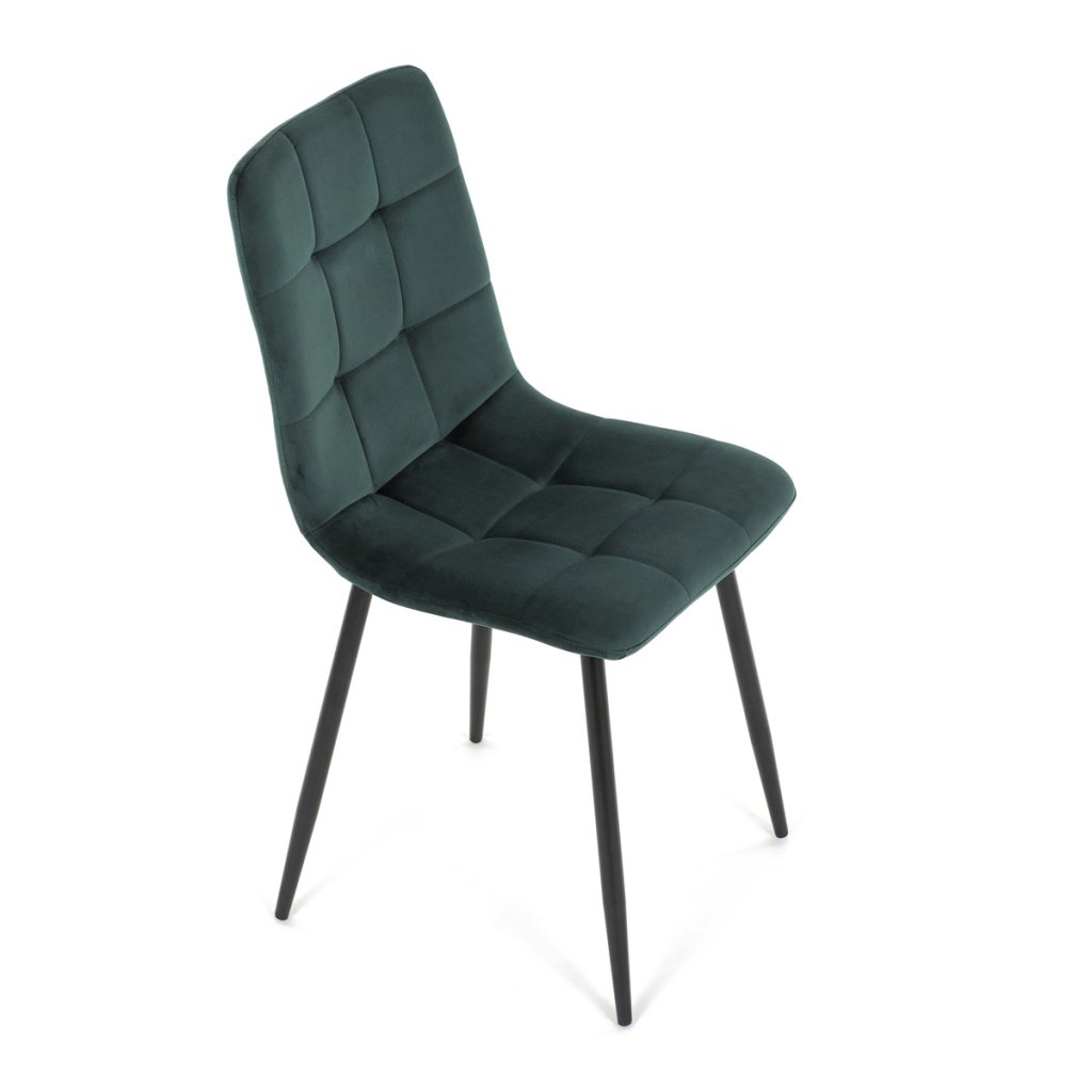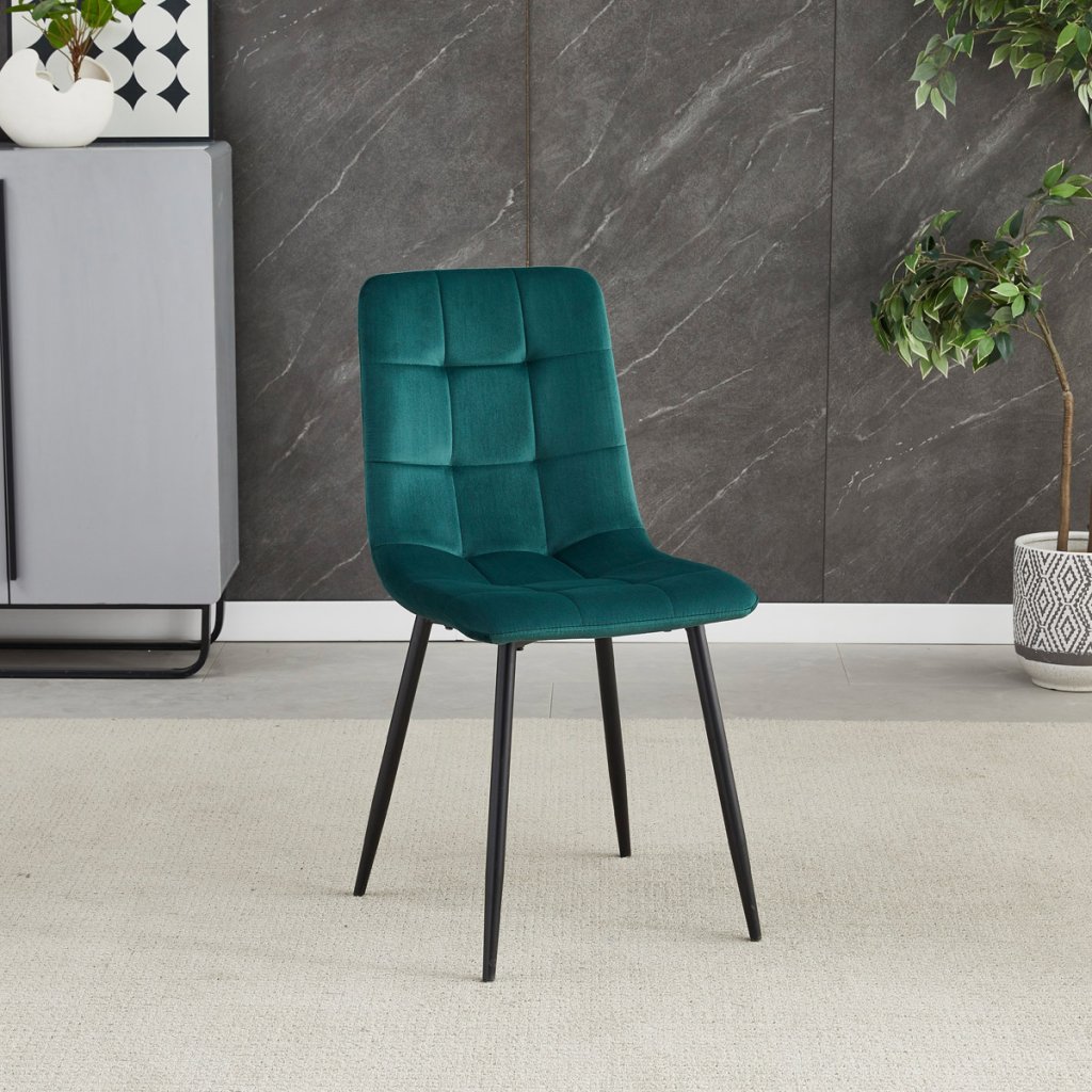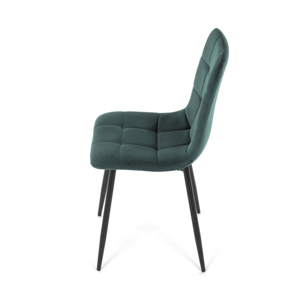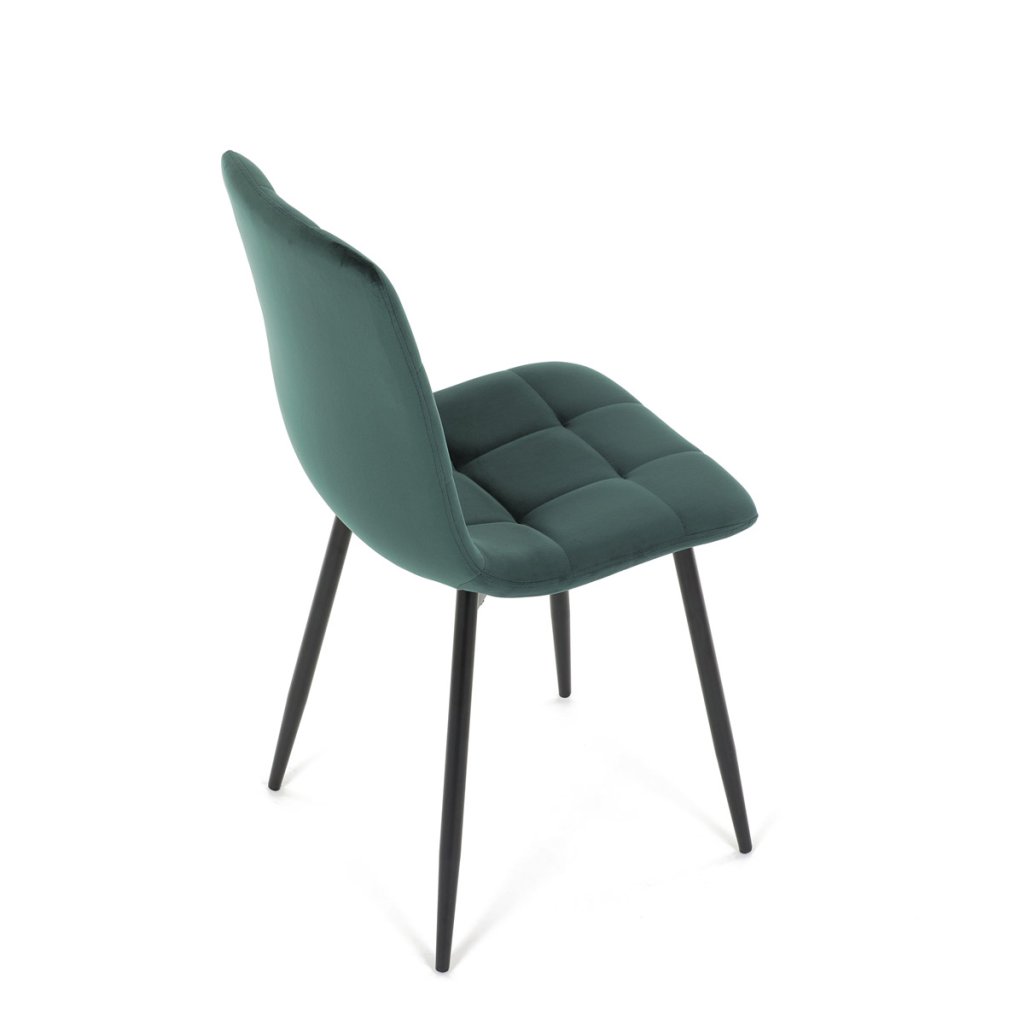 Jídelní židle v elegantní zelené barvě je ideální volbou pro stylové interiéry. Čalounění ze sametové látky působí luxusně a zajišťuje pohodlí při sezení. Decentní prošívání zdůrazňuje precizní zpracování, zatímco stabilní černé kovové nohy podtrhují minimalistický vzhled s industriálním nádechem. Díky kvalitnímu polstrování z PU pěny je vhodná pro každodenní stolování i delší posezení. Tato židle přináší harmonii mezi funkčností a moderním designem, který oživí každou jídelnu.