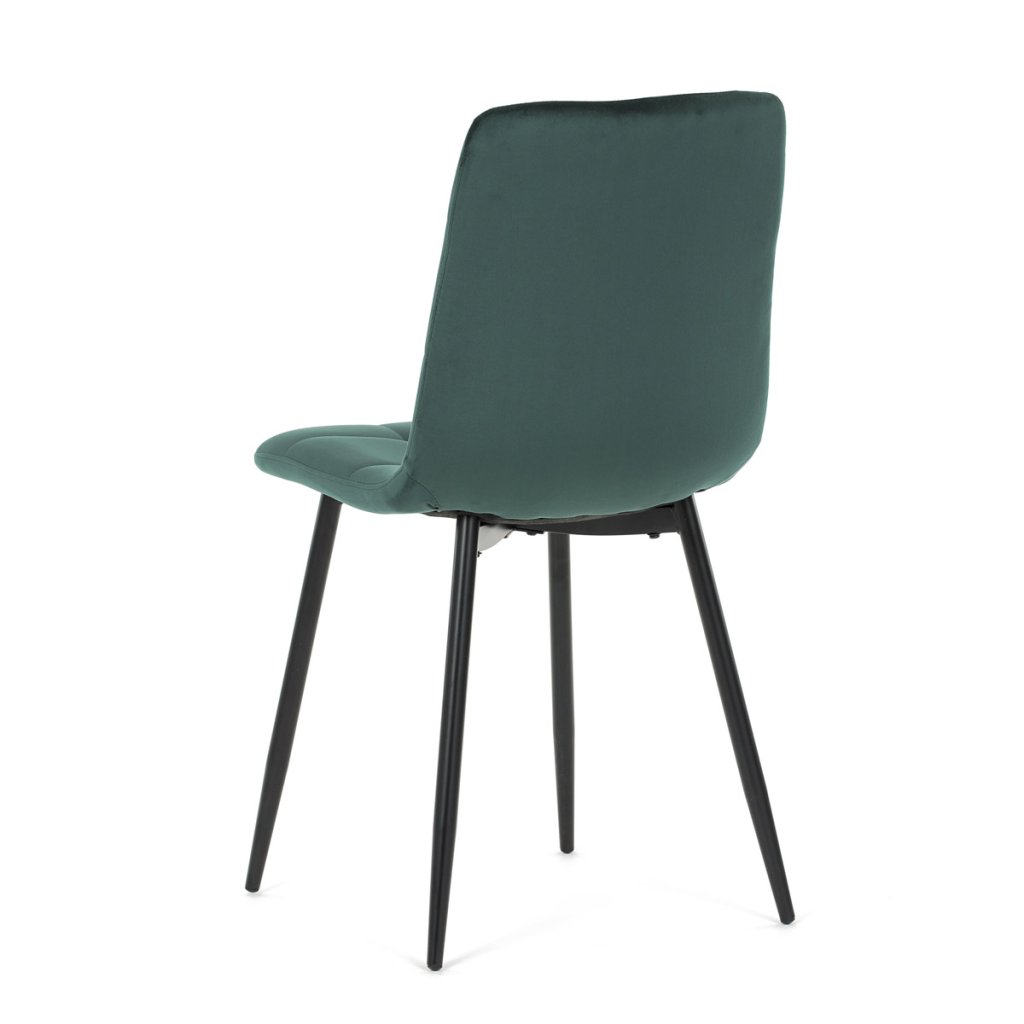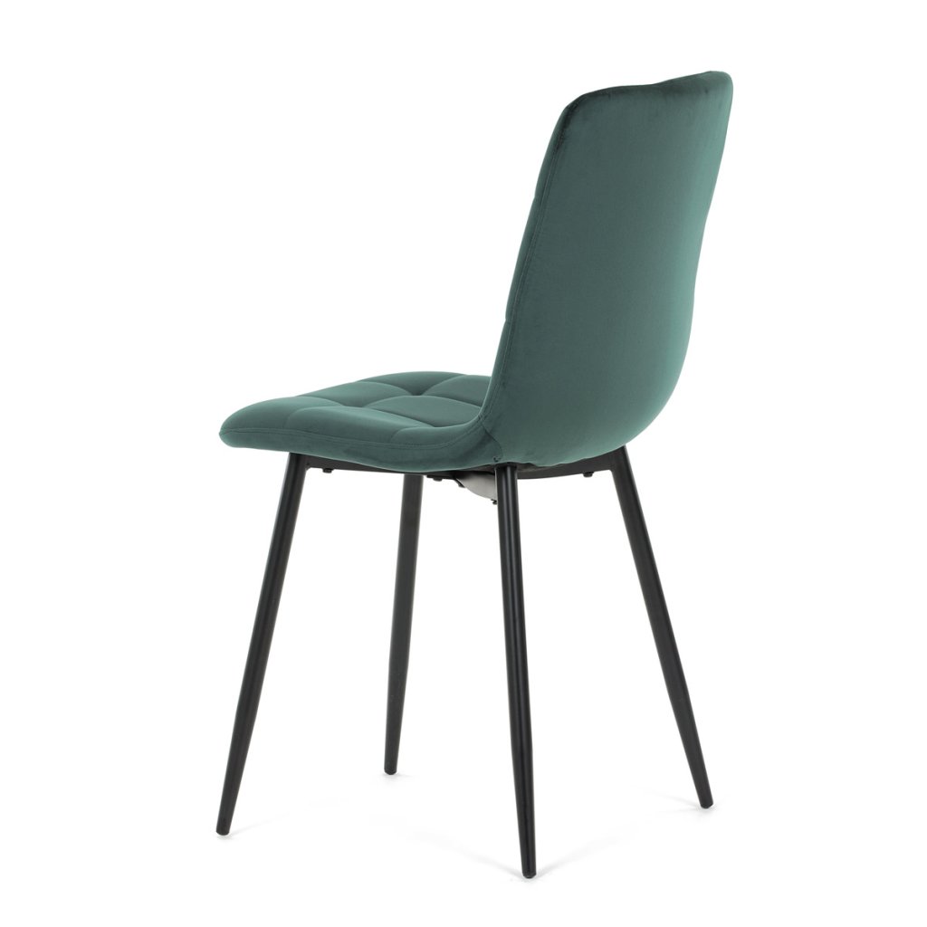 Židle jídelní, zelená sametová látka, nohy černý kov AJZ213ZS. Jídelní židle v elegantní zelené barvě je ideální volbou pro stylové interiéry. Čalounění ze sametové látky působí luxusně a zajišťuje...