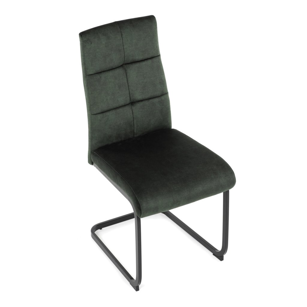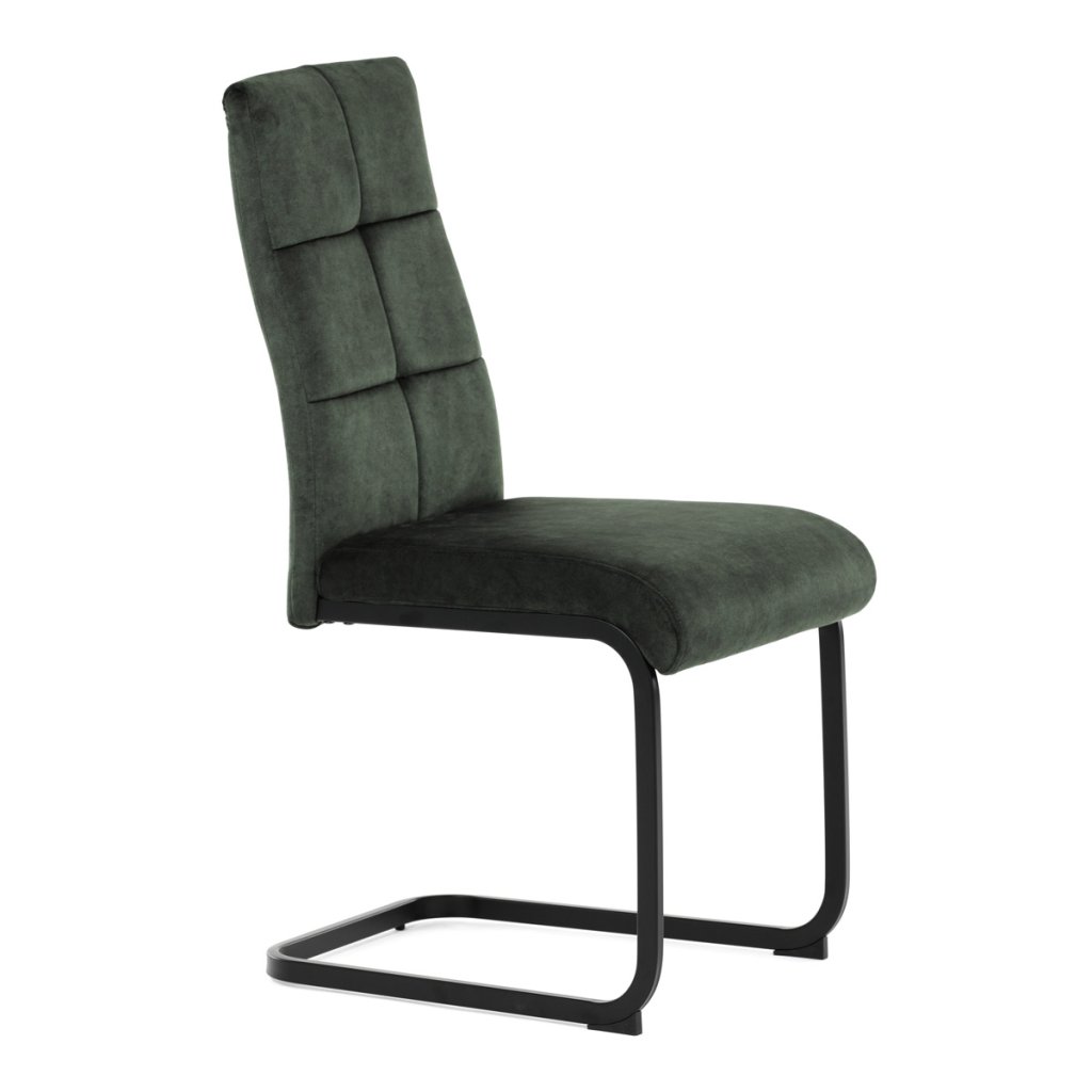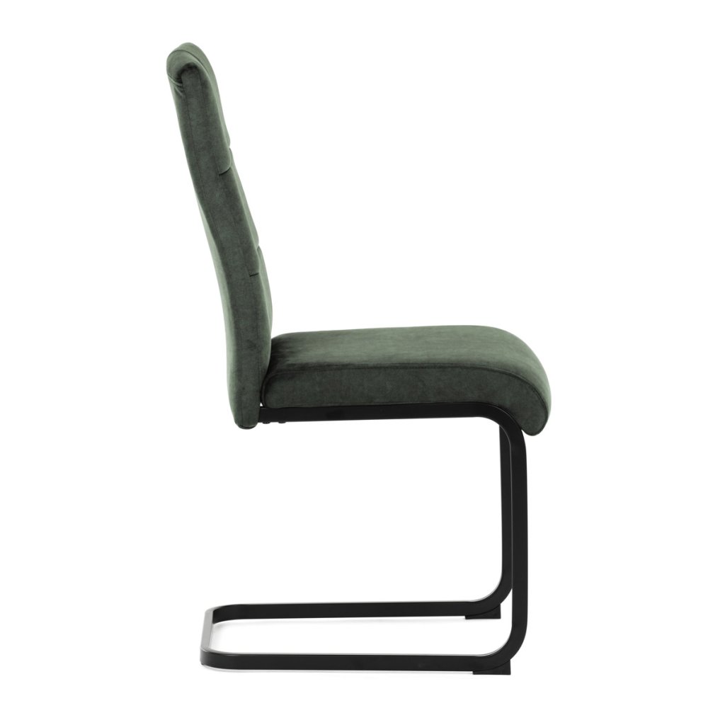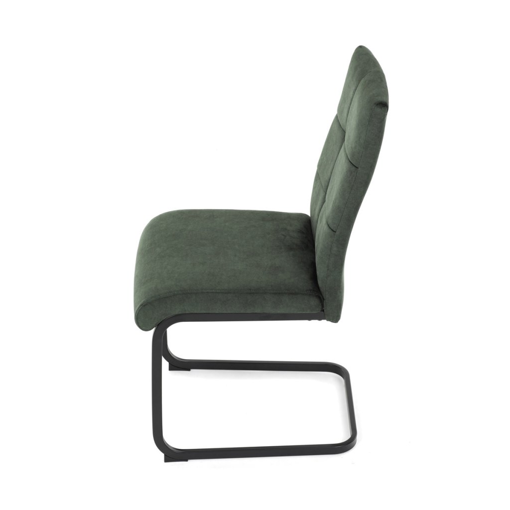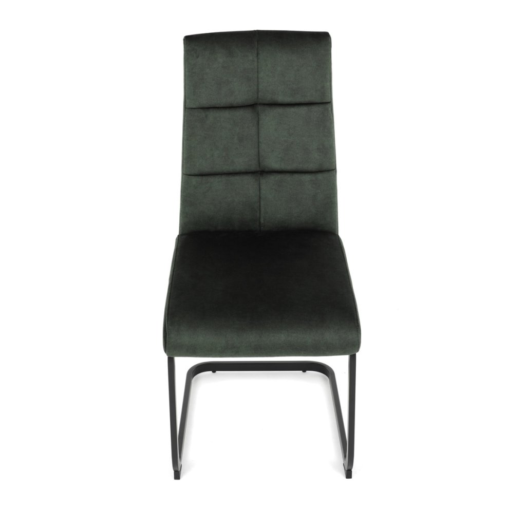 Moderní jídelní židle v zelené barvě zaujme svým elegantním designem a kvalitním matným sametovým čalouněním, které je příjemné na dotek. Pohupová podnož z černého kovu dodává stabilitu a současně stylový vzhled. Ergonomicky tvarované sedadlo a opěradlo zaručují pohodlí i při delším sezení. Tato židle je ideální volbou do moderních interiérů, kde přispěje k vytvoření sofistikované a útulné atmosféry. Perfektní spojení funkčnosti a designu pro vaši jídelnu.