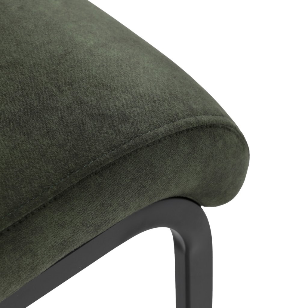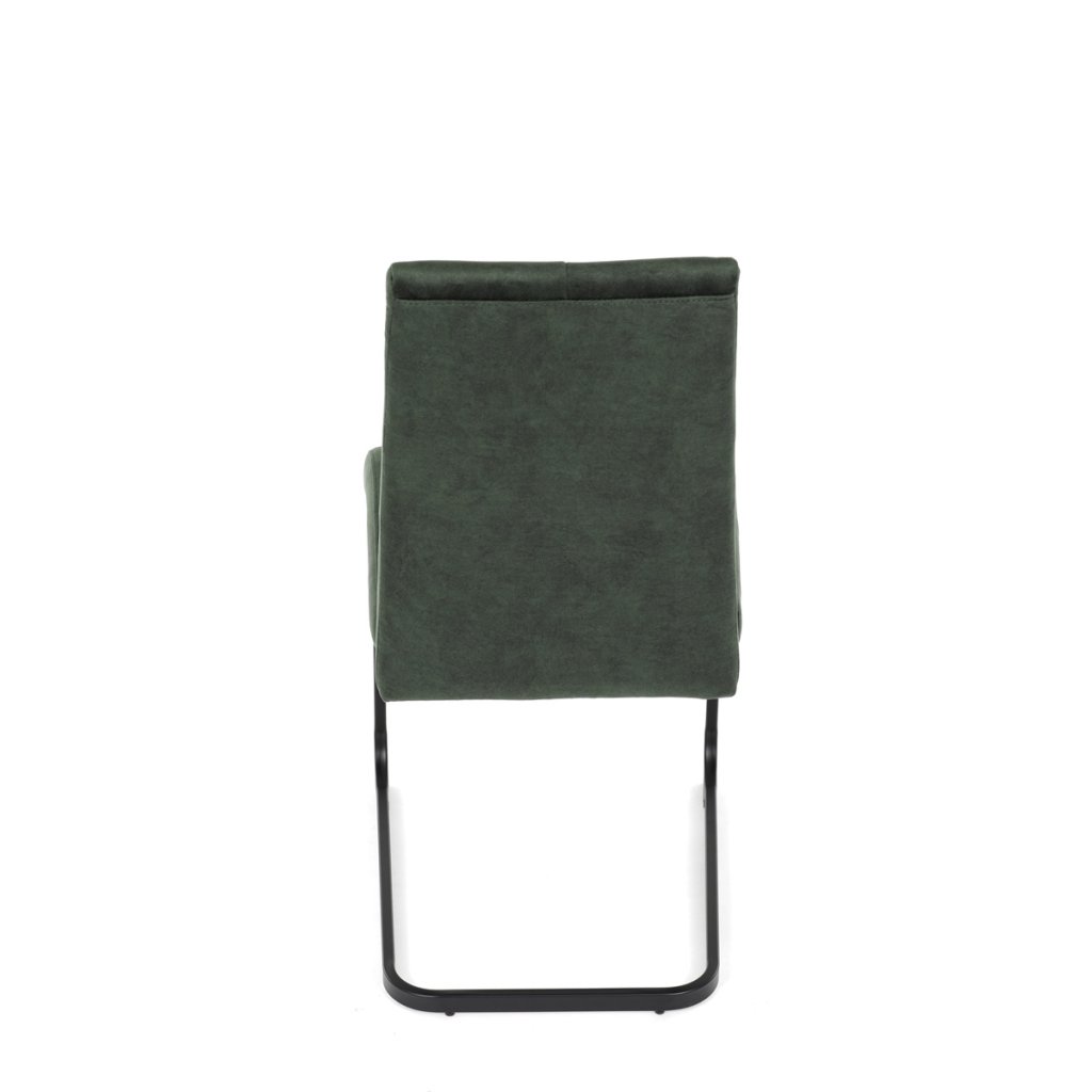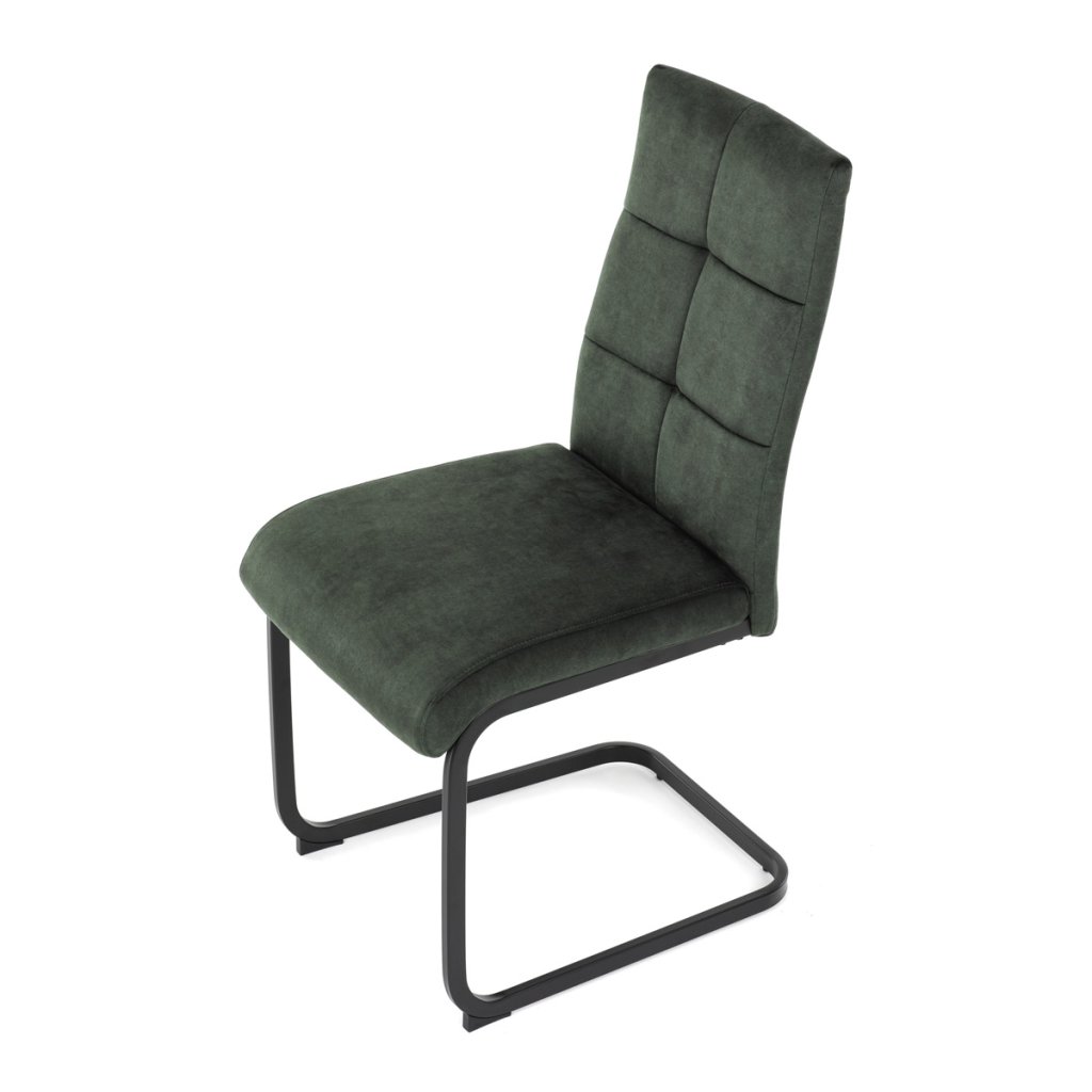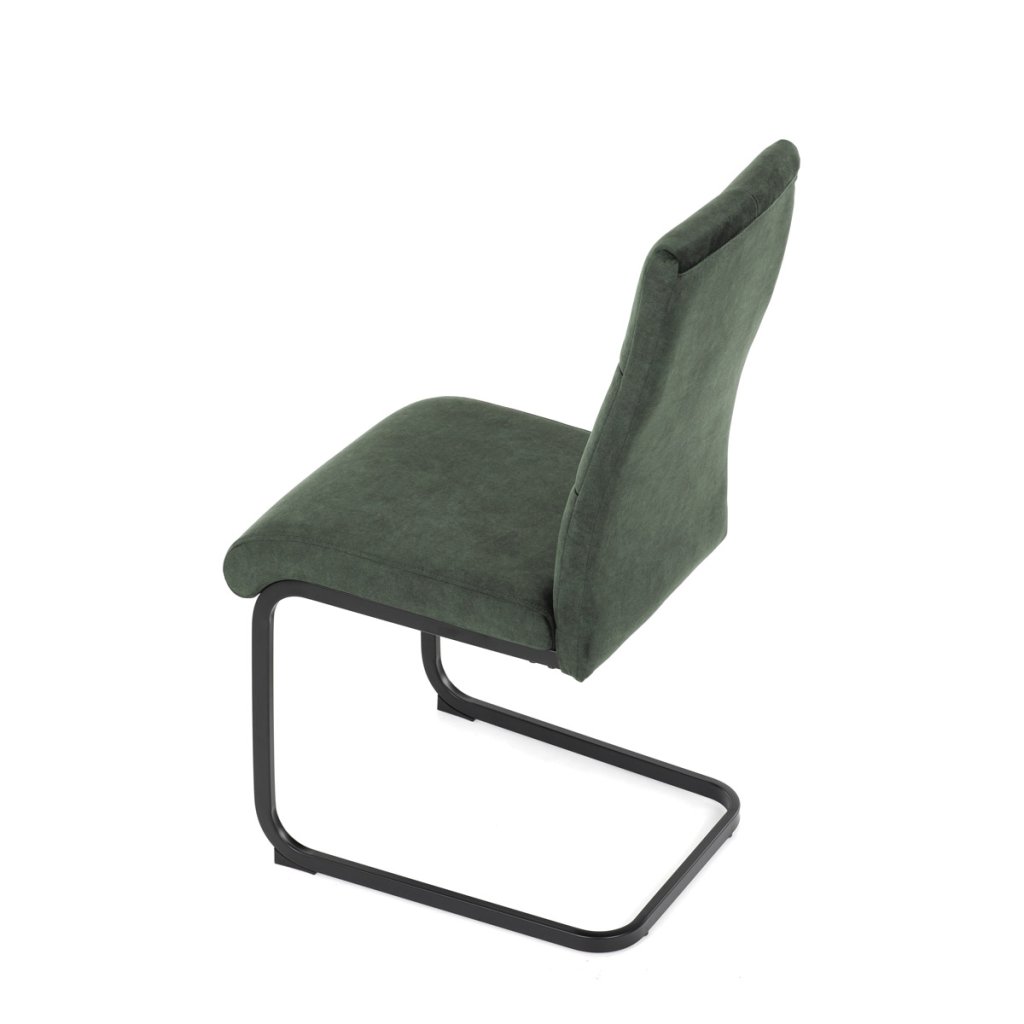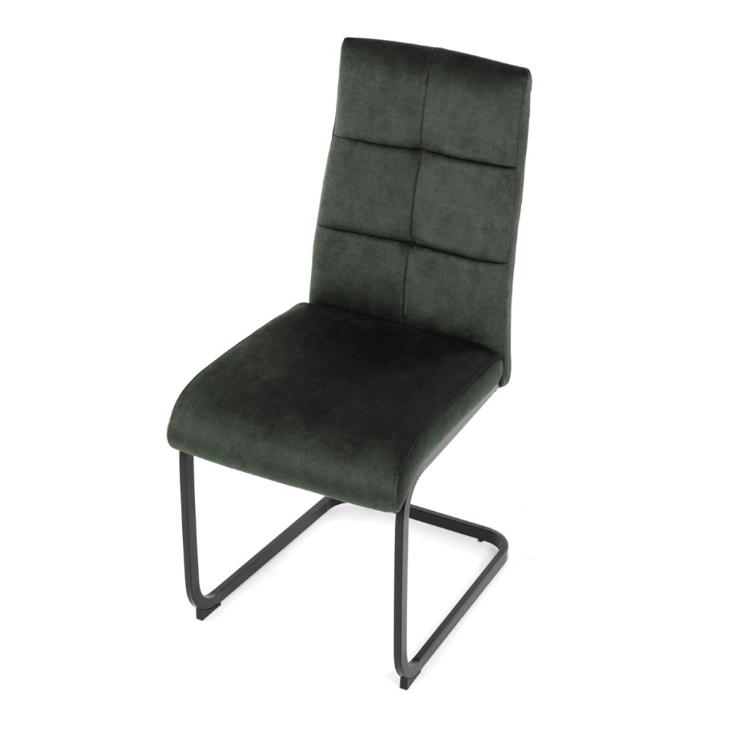 Moderní jídelní židle v zelené barvě zaujme svým elegantním designem a kvalitním matným sametovým čalouněním, které je příjemné na dotek. Pohupová podnož z černého kovu dodává stabilitu a současně stylový vzhled. Ergonomicky tvarované sedadlo a opěradlo zaručují pohodlí i při delším sezení. Tato židle je ideální volbou do moderních interiérů, kde přispěje k vytvoření sofistikované a útulné atmosféry. Perfektní spojení funkčnosti a designu pro vaši jídelnu.
