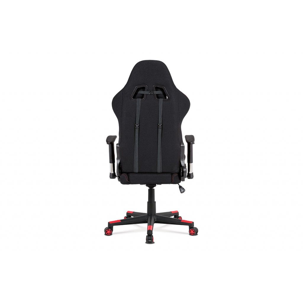 Moderní kancelářská židle ve sportovním designu v černé látce s červenými detaily se stane nezbytným doplňkem každého herního závodníka.