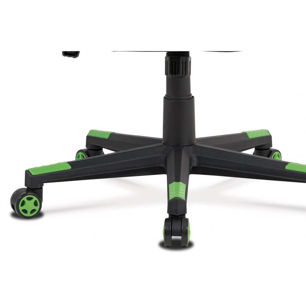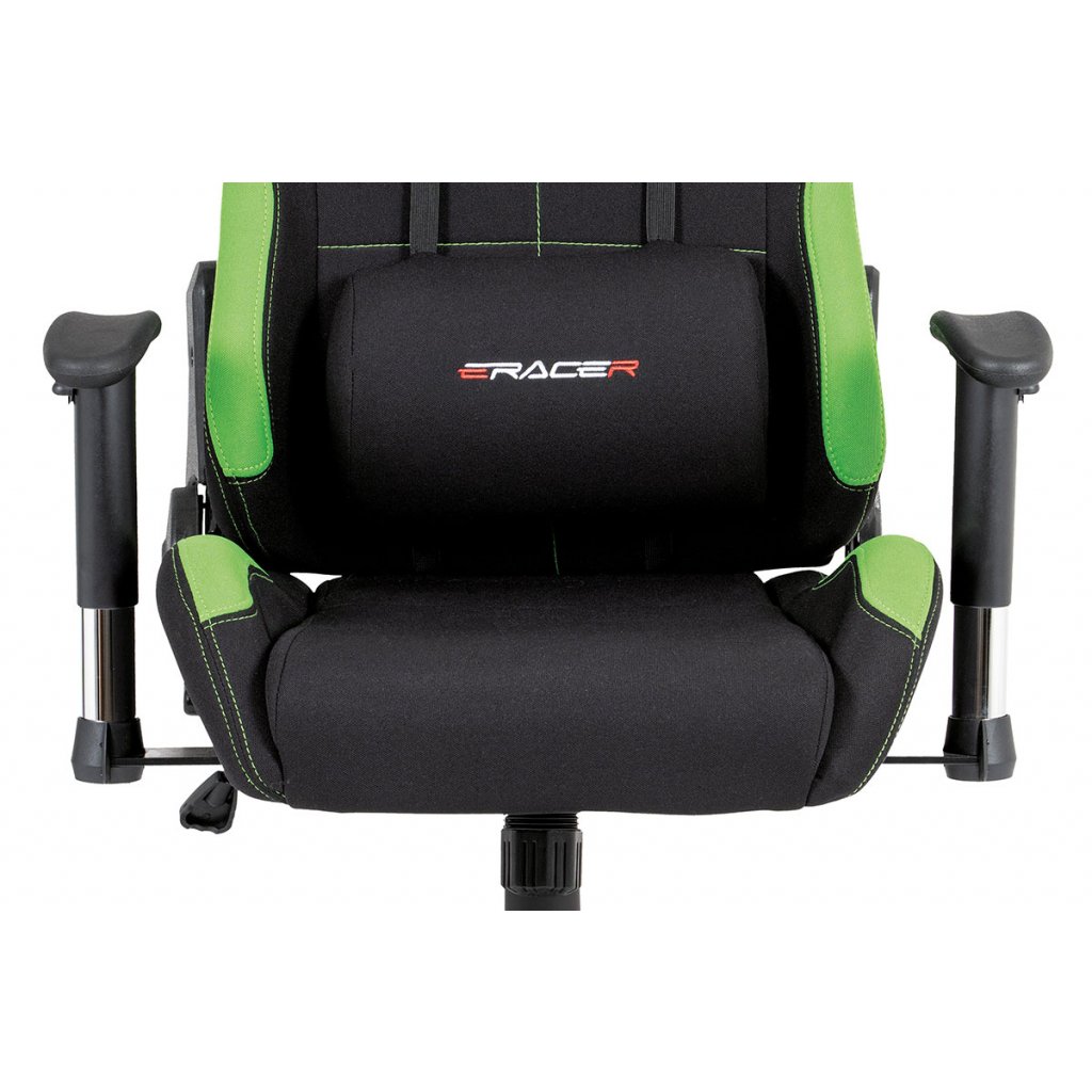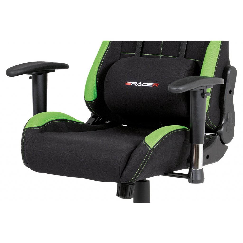 Moderní kancelářská židle ve sportovním designu v černé látce se zelenými detaily se stane nezbytným doplňkem každého herního závodníka.