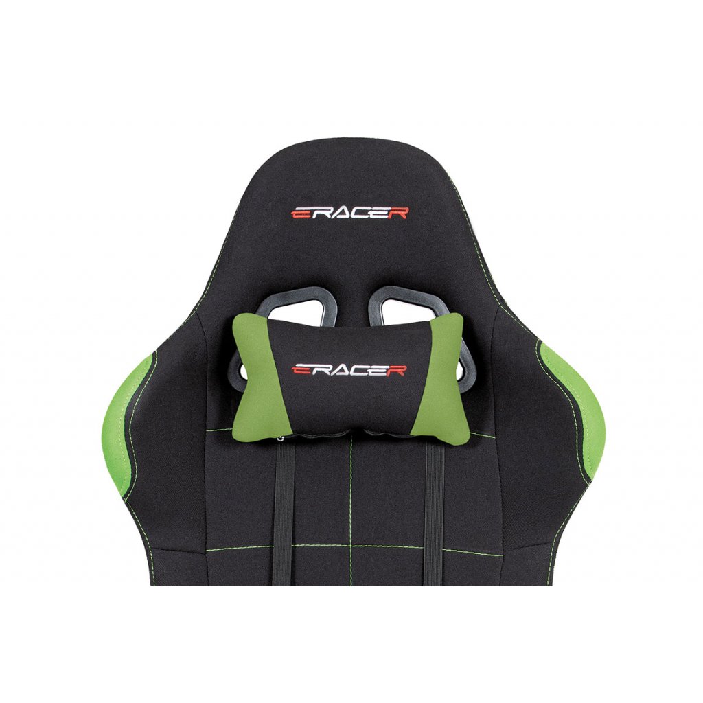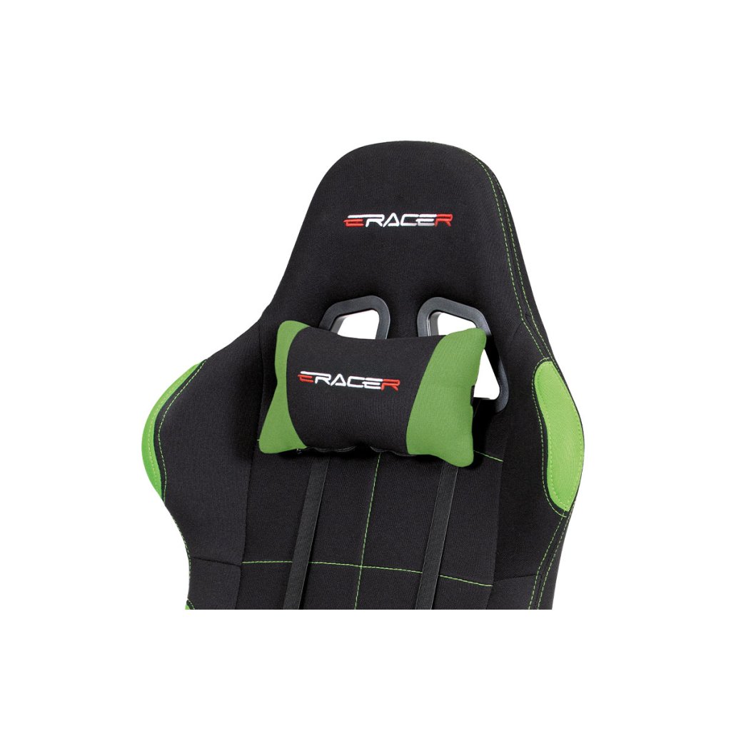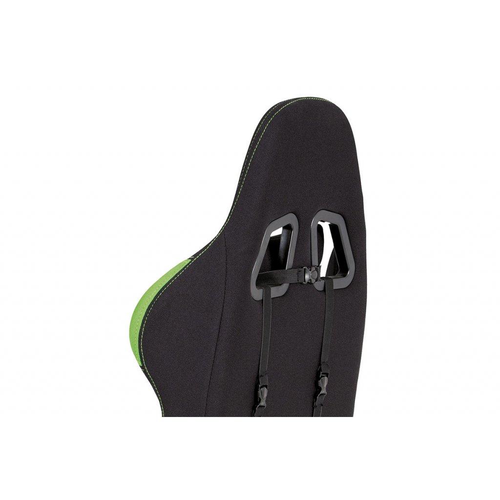 Moderní kancelářská židle ve sportovním designu v černé látce se zelenými detaily se stane nezbytným doplňkem každého herního závodníka.