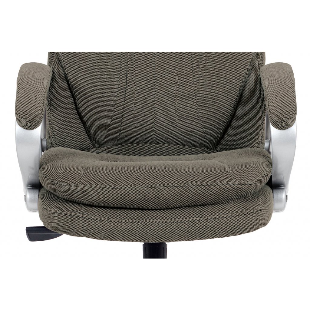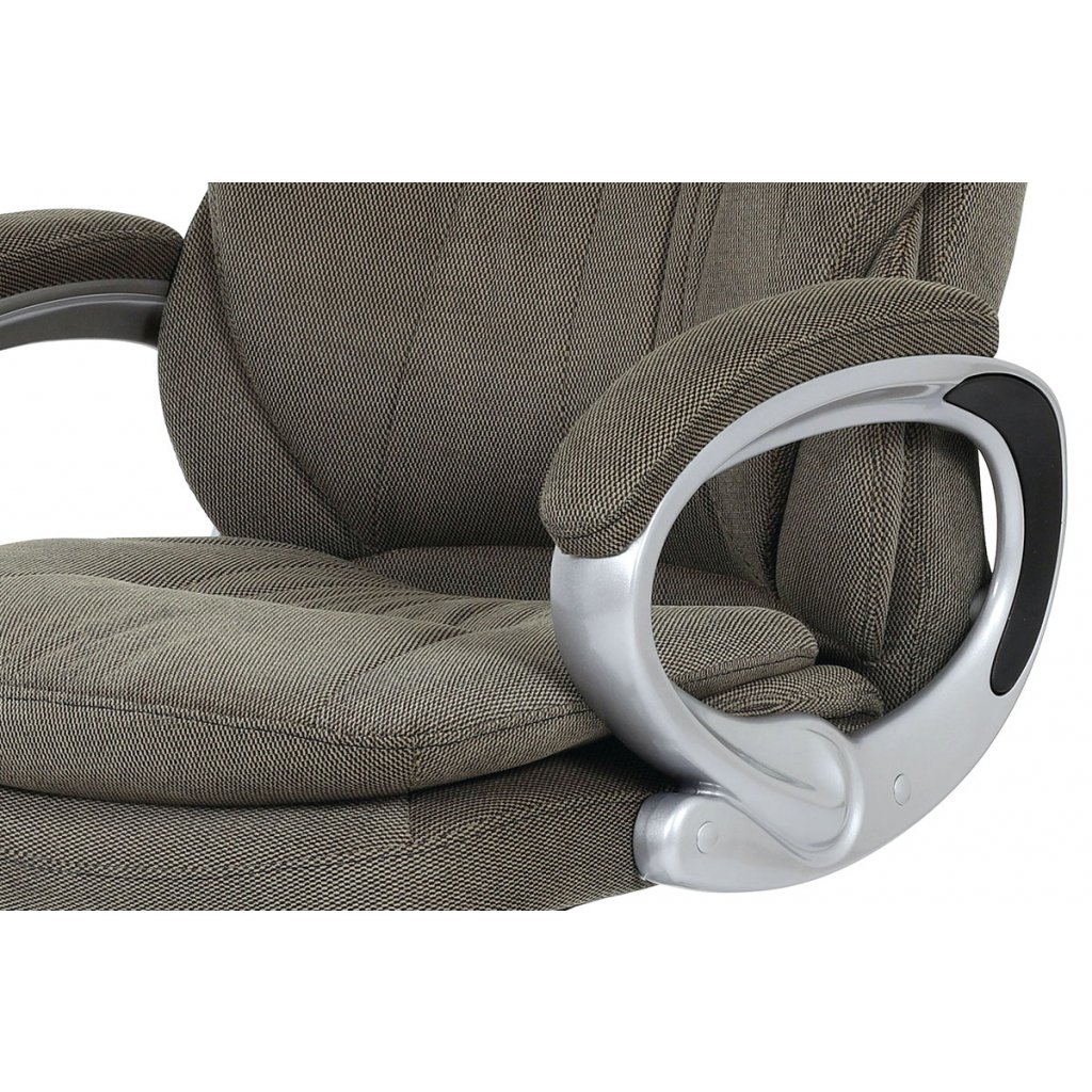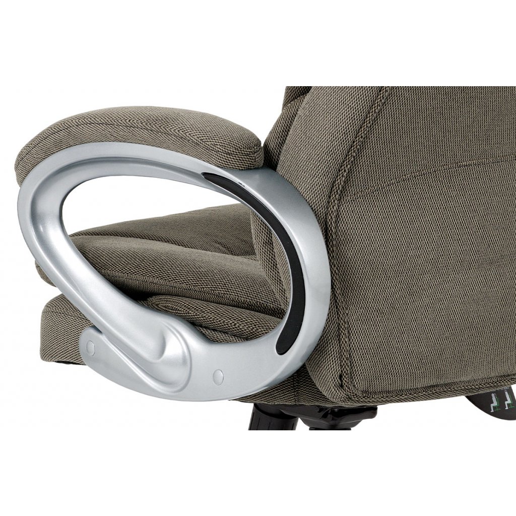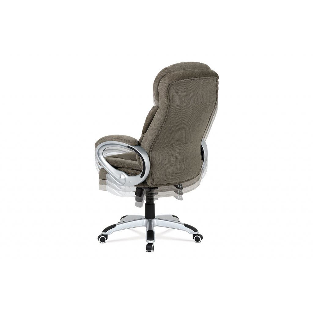 Moderní a velmi komfortní kancelářská židle je potažená lesklou šedostříbrnou látkou. Díky pohodlnému sedáku a opěráku s výjímečným polstrováním, které jsou stylově tvarované a se super měkkým podhlavníkem se budete cítit naprosto skvěle. Pohodlí zaručují i pevné plastové područky v šedé barvě. Židle má také i snadno omyvatelný plastový kříž šedé barvy a plastová kolečka, která jsou vhodná na tvrdé povrchy. Židle je výškově nastavitelná a s houpacím mechanismem a její nosnost je až 120 kg. Výška židle je 115 - 124 cm. Výška sedu je 48 - 57 cm. Šířka sedu je 53 cm. Hloubka sedu je 55 cm.