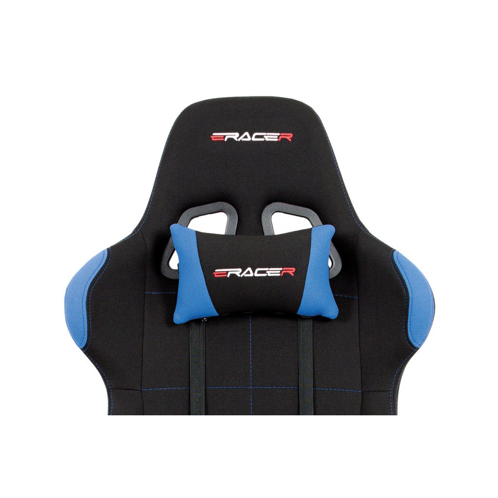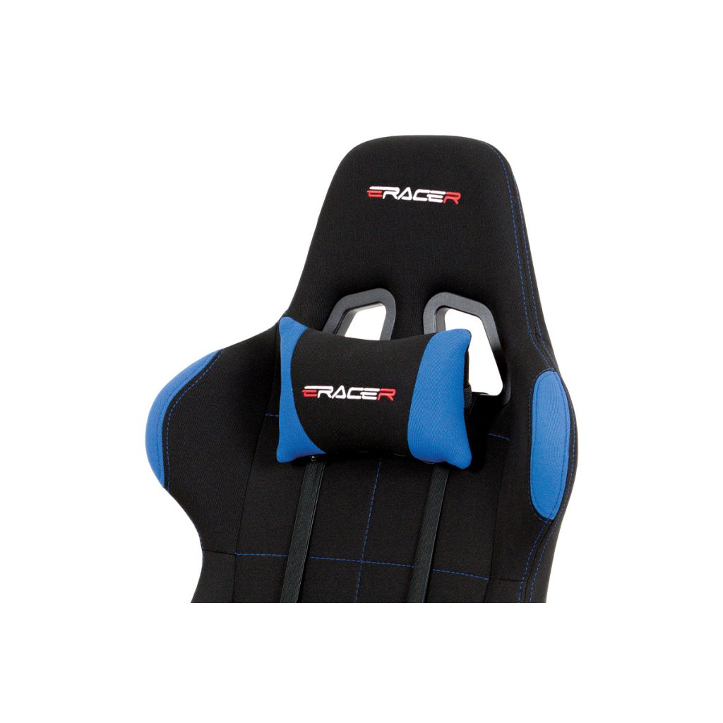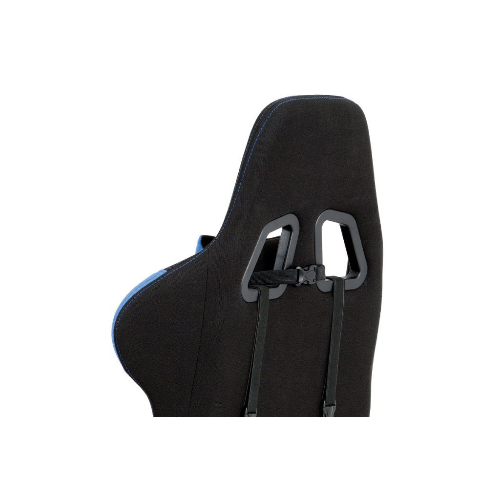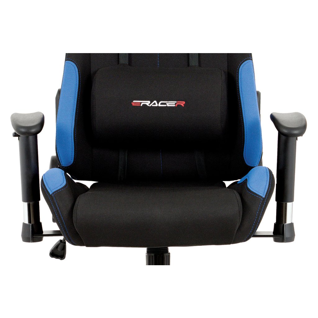 Moderní kancelářská židle ve sportovním designu v černé látce s modrými detaily se stane nezbytným doplňkem každého herního závodníka.