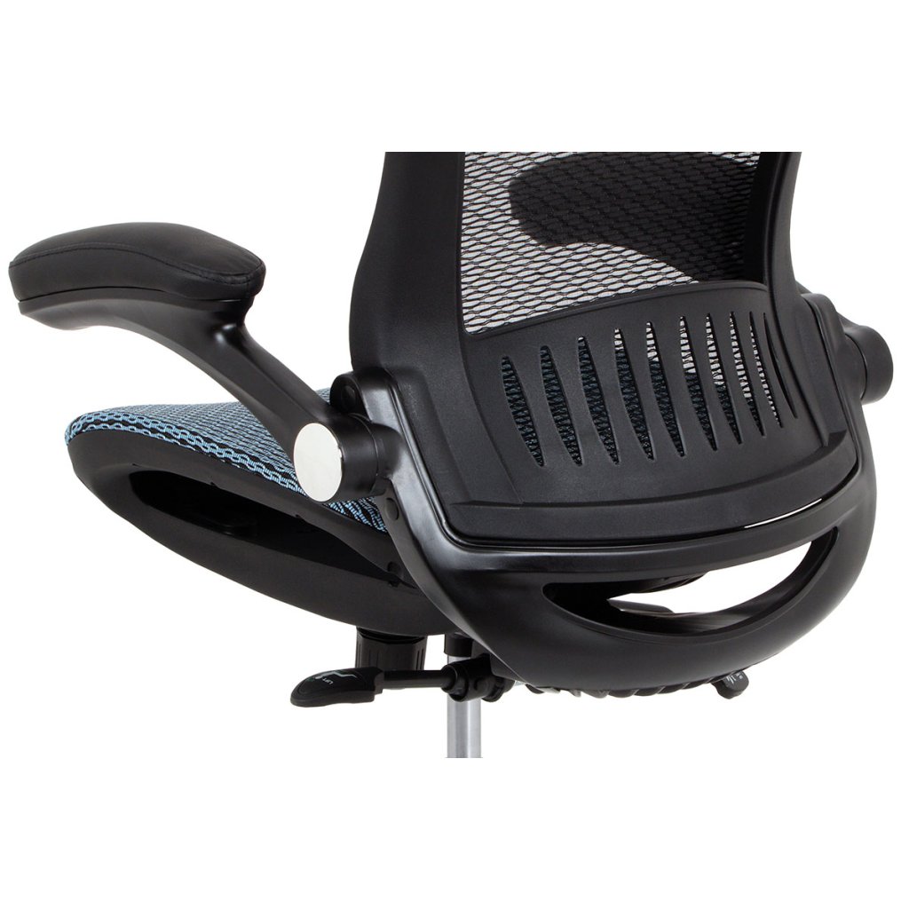 Kancelářská židle očalouněná látkou MESH v černé a modré barvě.