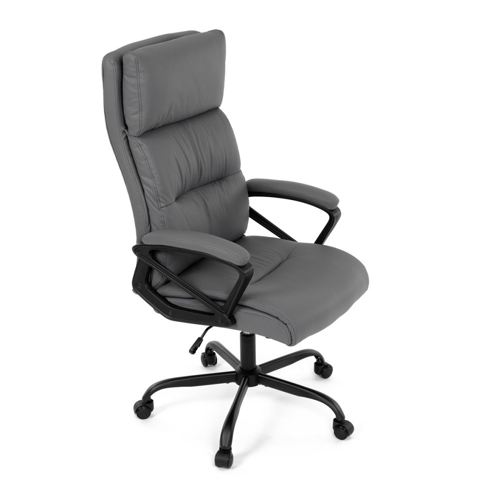 Pohodlná kancelářská židle značky v elegantním šedém provedení, která nabízí maximální komfort během pracovního dne. Židle je čalouněná kvalitní ekokůží, která je snadná na údržbu a příjemná na dotek. Robustní konstrukce a měkké PU pěnové výplně zajišťují dlouhodobou odolnost a pohodlí. Pevné područky a houpací mechanika přidávají na komfortu a poskytují potřebnou podporu. Tato moderní kancelářská židle je ideální volbou pro každou kancelář, kde se klade důraz na styl a pohodlí. Černý kovový kříž s kolečky na tvrdé povrchy zajišťuje stabilitu a snadnou mobilitu. Dodáváno demontované.