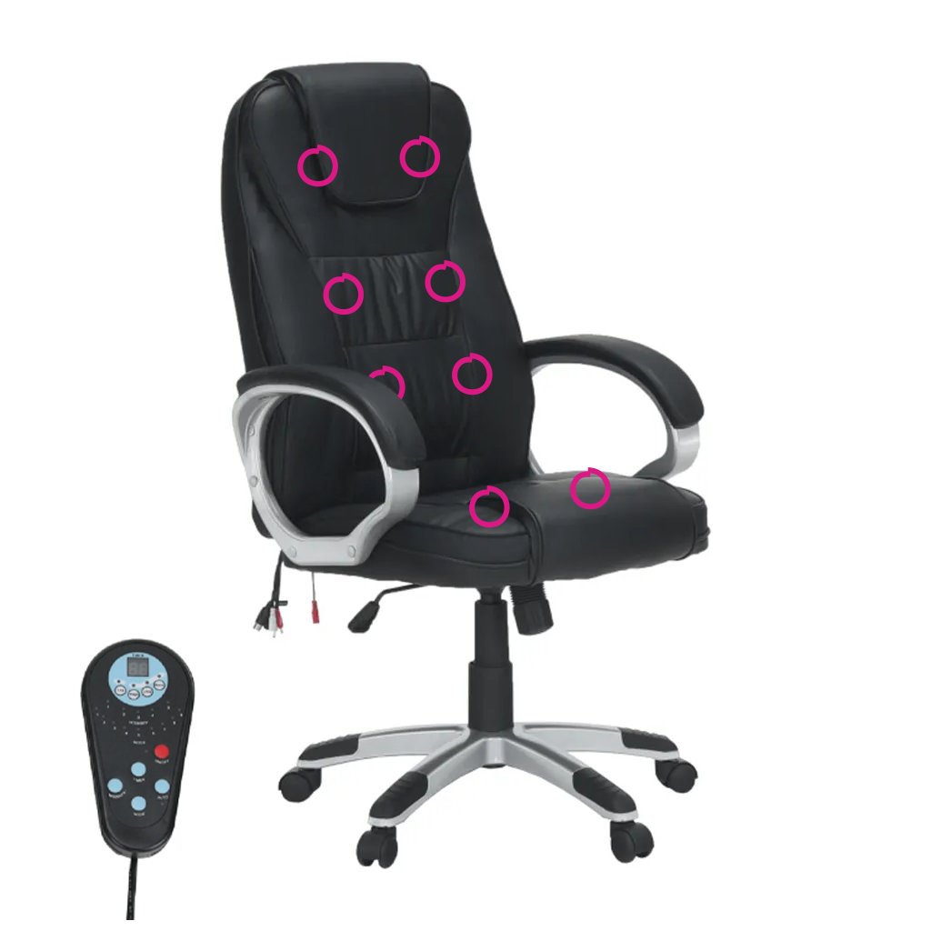 Kancelářské křeslo TYLER UT-C2652M, čalouněné černou ekokůží, s funkcí masáže, v moderním designu. Křeslo obsahuje funkci masáže - vibračních motorků, 5 masážních funkcí nastavení intenzity, 4 masážní zóny a časovač.