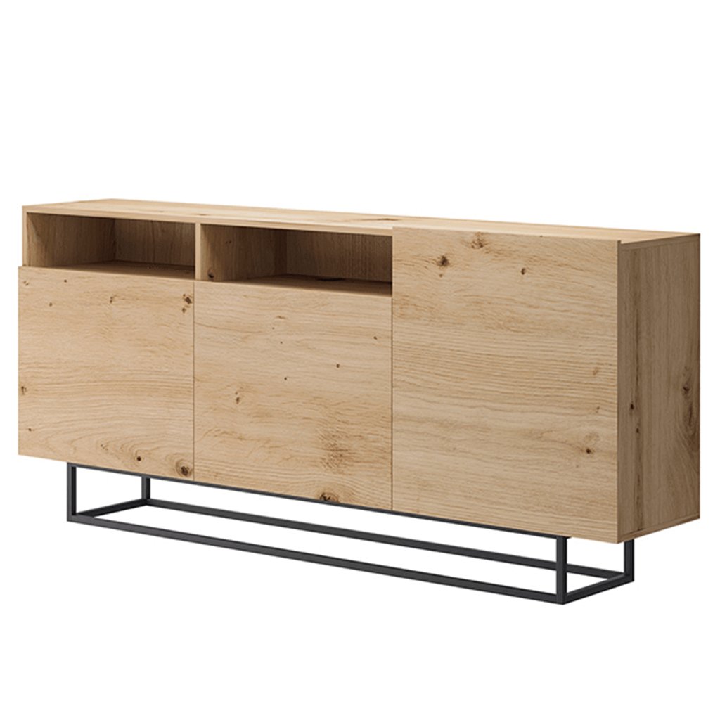 Široká komoda 180 cm s dvířky a otevřeným úložným prostorem v dekoru dub artisan.