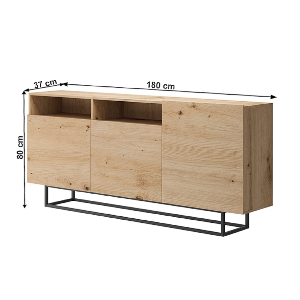 Široká komoda 180 cm s dvířky a otevřeným úložným prostorem v dekoru dub artisan.