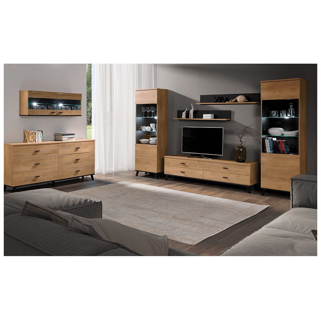 Komoda, dub lefkas/černá, SIRAN TYP 5