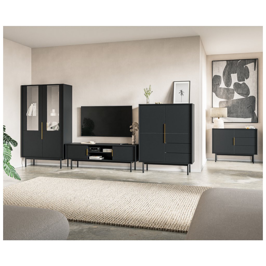 Komoda černá se šuplíky a dveřmi 154cm TKO100C-3D3S