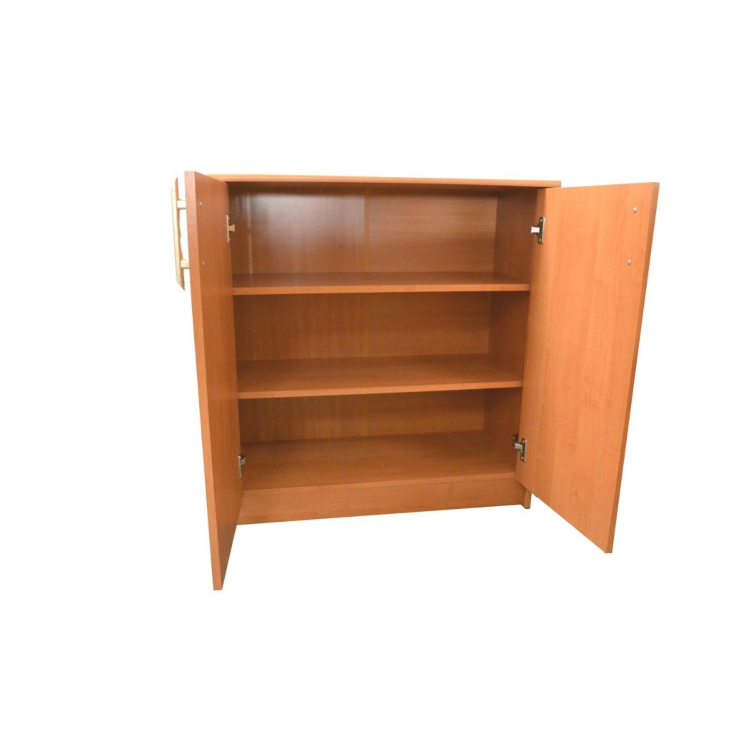 Komoda v barevném provedení buk. Komoda je vyrobená z lamina a obsahuje dvoje dvířka. Dodáváno v demontu.