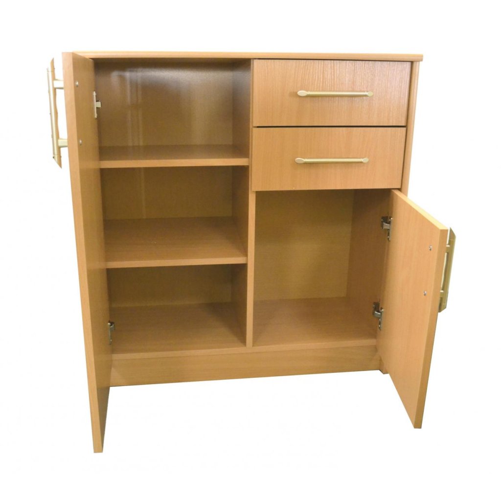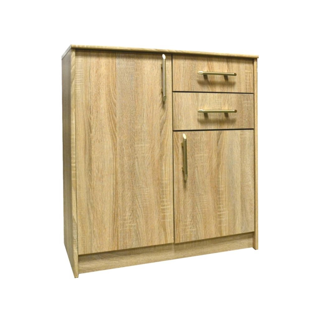 Komoda v barevném provedení dub sonoma. Komoda je vyrobená z lamina a obsahuje dvoje dvířka a dvě zásuvky. Dodáváno v demontu.