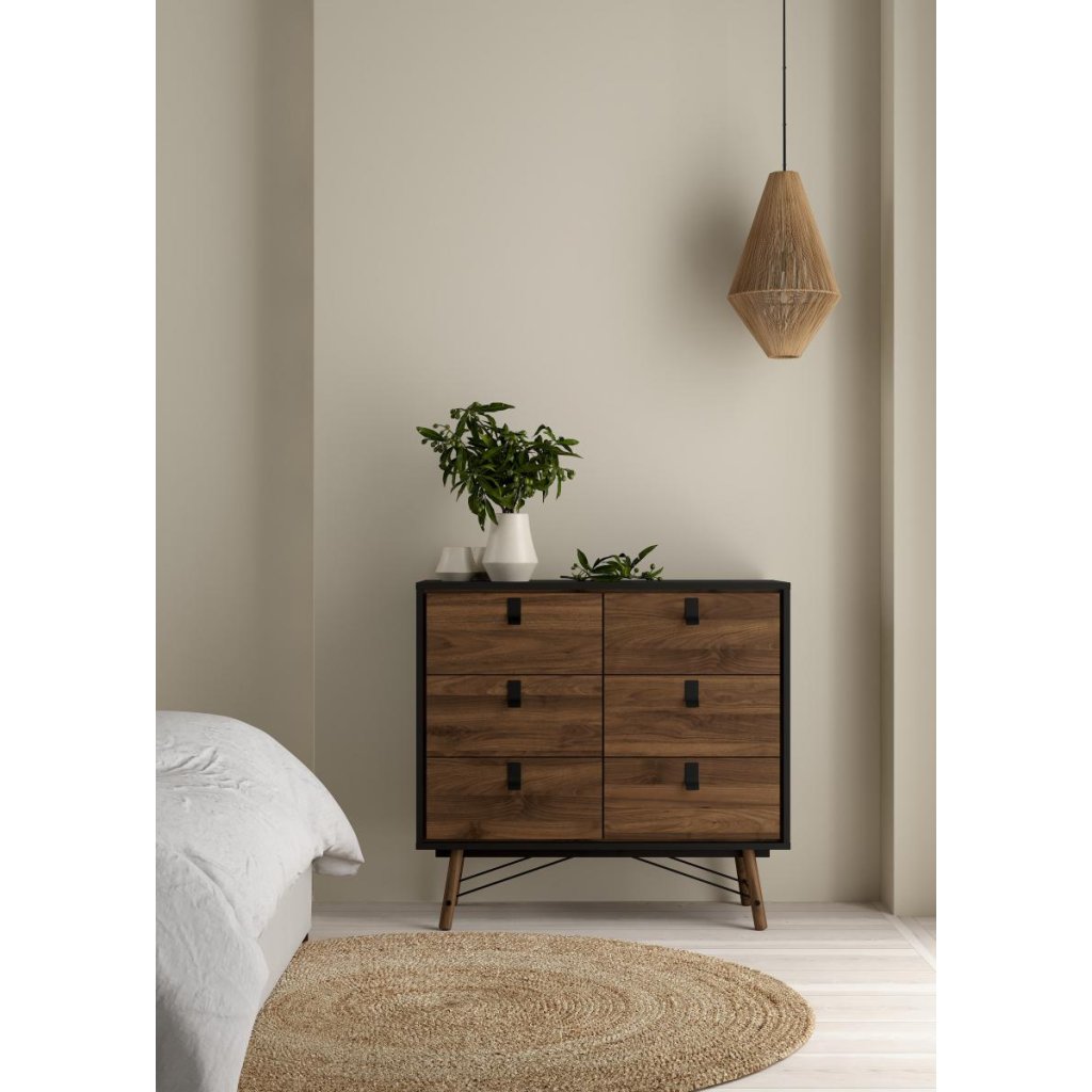 Kolekce Rain, inspirovaná nadčasovou dánskou designovou klasikou, kombinuje retro a moderní styl a nabízí široký výběr elegantního nábytku. Vyznačuje se šikmými nohami z mořeného masivního buku v kombinaci s kovovými tyčemi, úchytkami z vysoce kvalitního hliníku s matným černým povrchem a „plovoucími čely“. Iluze plovoucích čel je dosažena kombinací 12 mm vnitřní skříňky s 18 mm vnější skříňkou. Tento jedinečný design dodává celkové estetice nádech lehkosti.Zboží je dodáváno v demontu. Součástí je schematický návod na montáž včetně všech spojovacích prvků. Vyobrazené doplňky a dekorace nejsou v ceně.Skandinávská společnost Tvilum navrhuje a vyrábí kvalitní, cenově dostupný a funkční nábytek do domácností po celém světě. Při výrobě klade velký důraz na ochranu životního prostředí. Kromě jiného usiluje o snížení emisí CO2, spotřeby energie a podporuje udržitelnost. Ve svých výrobcích používá recyklované materiály a FSC certifikované dřevo. Výběrem produktů společnosti Tvilum přispíváte k udržitelné budoucnosti.