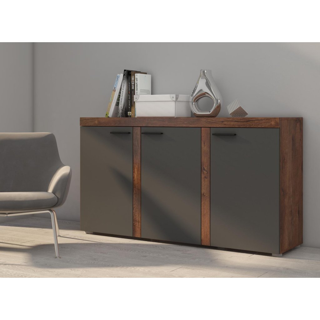 Komoda Rizo je nejen skvělým doplňkem k bytové stěně Rizo. Stejně výborně poslouží jako samostatný kus nábytku. Komoda má univerzální využití a nabízí dostatek úložného prostoru. Komoda je vyrobena z odolného a stálobarevného lamina. Komoda je dodávaná v demontu. Součástí balení je schematický montážní návod, včetně všech potřebných spojovacích prvků. Vyobrazené doplňky a dekorace nejsou v ceně. Vlivem nastavení monitorů, nebo displejů telefonů, se zobrazení barev na fotografii může od skutečnosti lišit.