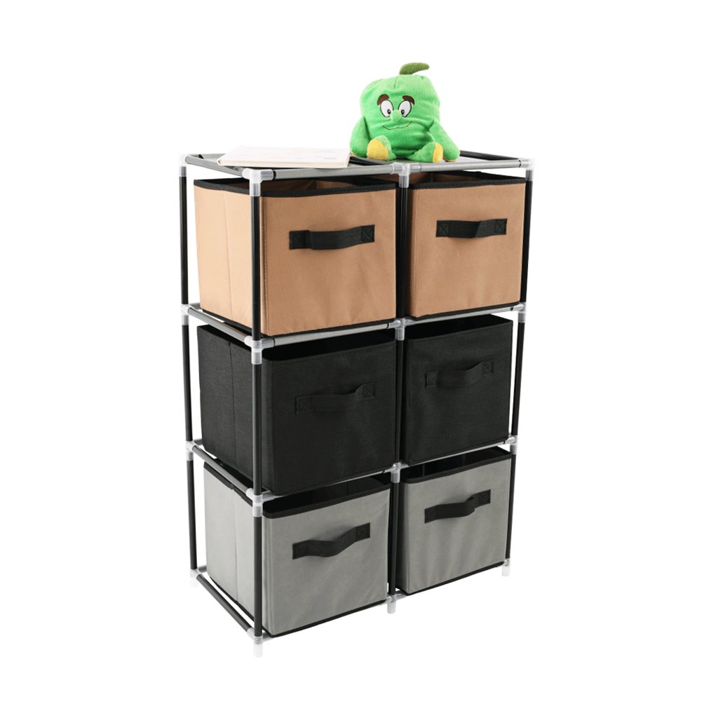 Komoda s látkovými šuplíky, černá/hnědá/šedá, CAMILO TYP 2