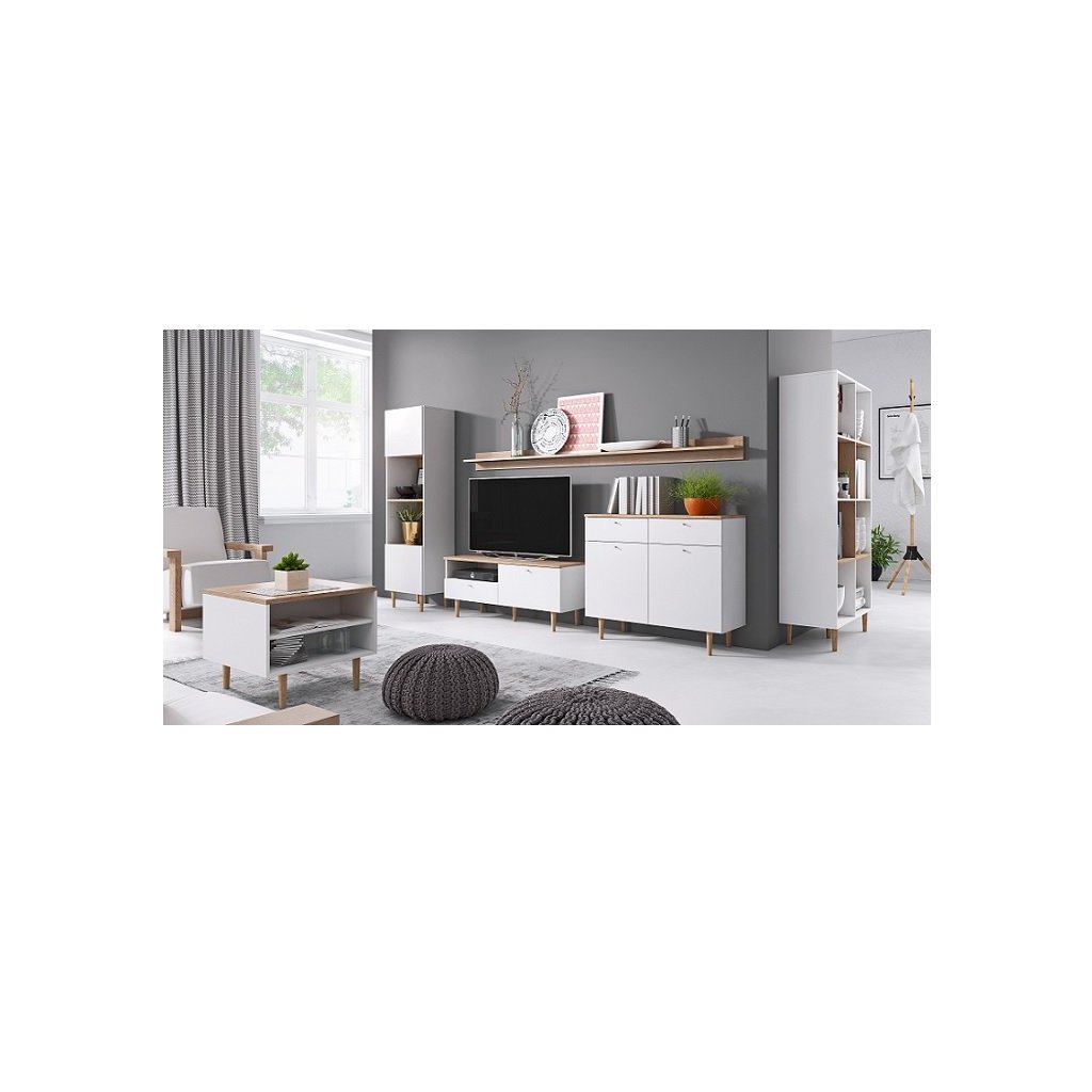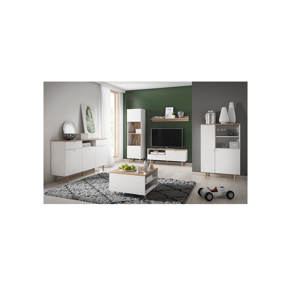 Severský styl bydlení takový je tento konferenční stolek. Tento klenot ve skandinávském stylu vám bude sloužit dlouhá léta i díky kvalitnímu materiálu, laminované dřevotřísce a ABS hranám. Neutrální barevný základ tvoří dominantní bílá, obohacená o přírodní odstín buk pískový. Zajímavým detailem jsou nožičky, které jsou vyrobeny ze dřeva a vnesou do celého interiéru pocit tepla. Konferenční stolek poskytuje otevřený úložný prostor rozdělen policí na dvě odkládací plochy. Detailní míry najdete vyobrazeny u fotografie v obrázkové galerii pod produktem. Dodáváme v demontu.