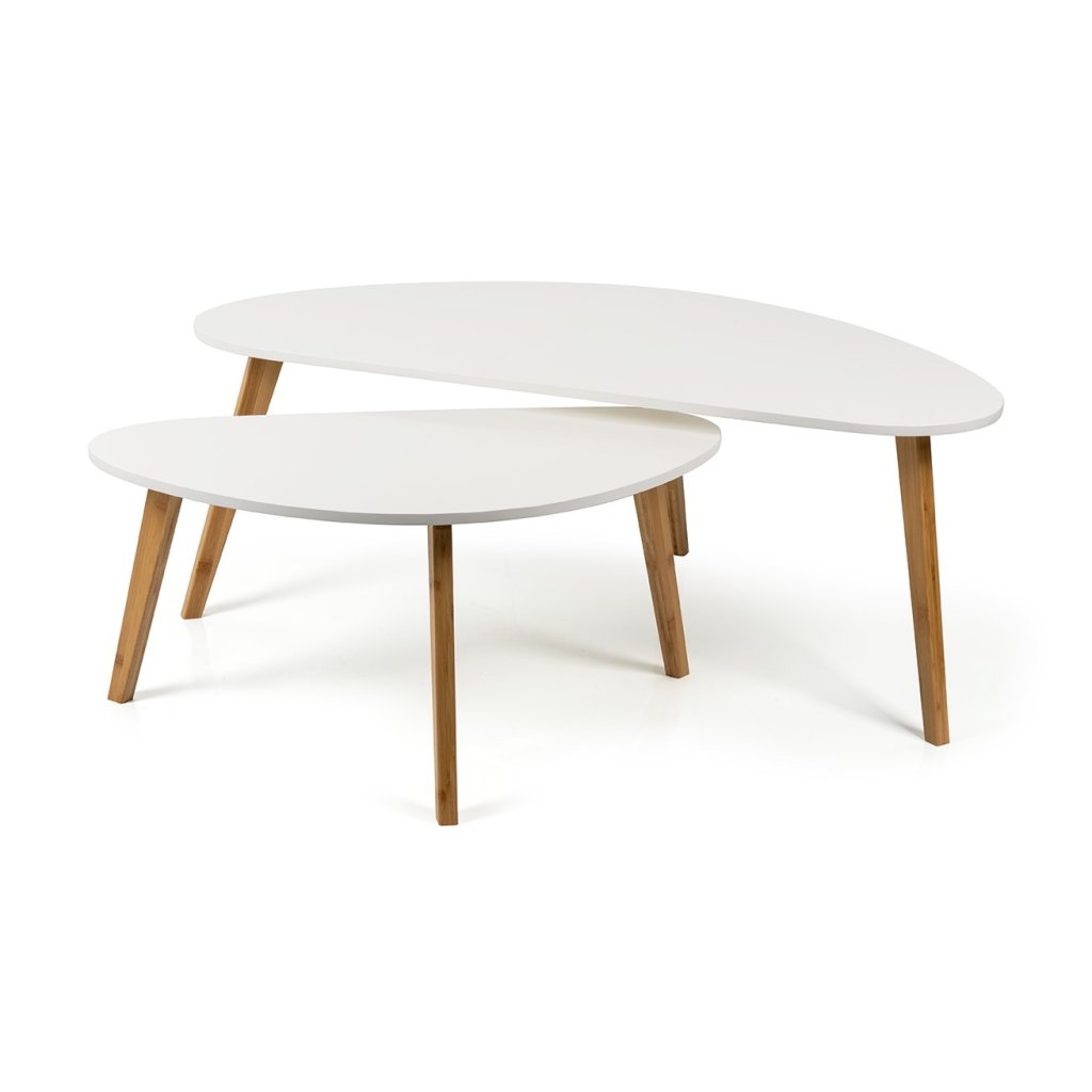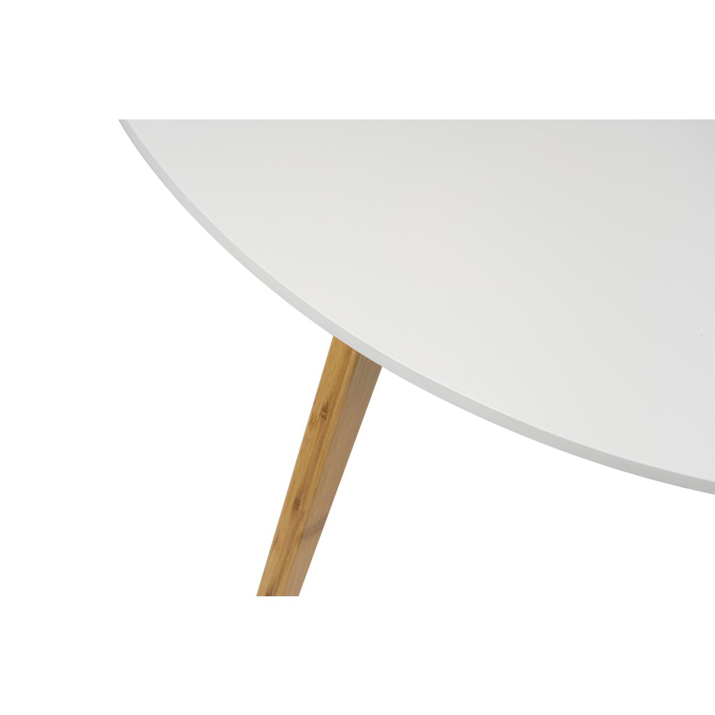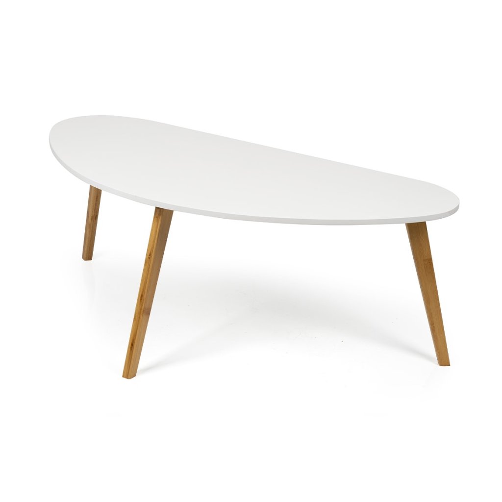 Odkládací stolek, lakovaná MDF deska v bílé barvě, bambusové nohy, 60x120x45 cm.