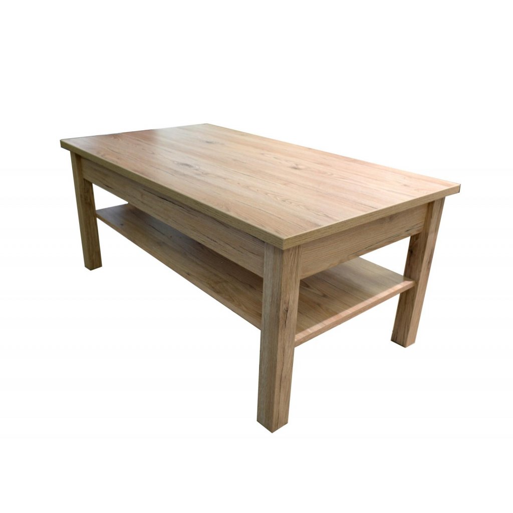 Jeho dekor dub san remo je příjemný a v teplých tónech, díky kterým bude Váš interiér působit útulně. K tomuto stolku doporučujeme obývací stěnu F167 v dekoru dub san remo. Dodáváno v demontu.