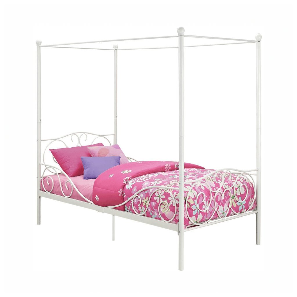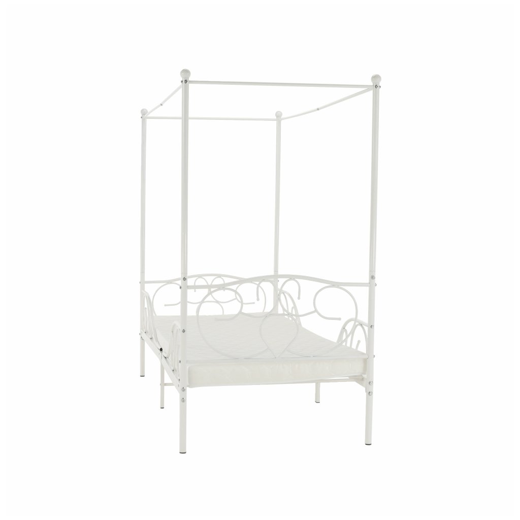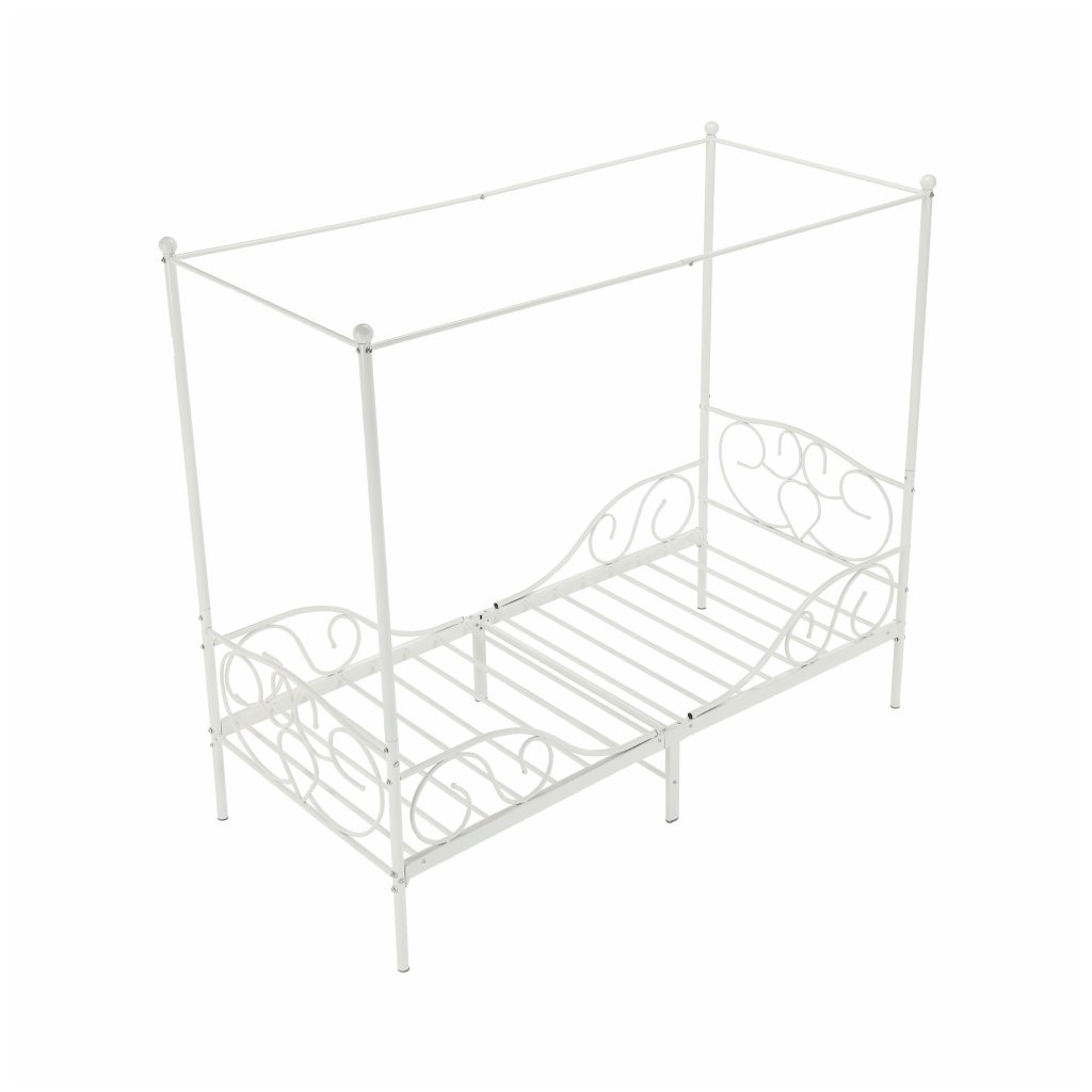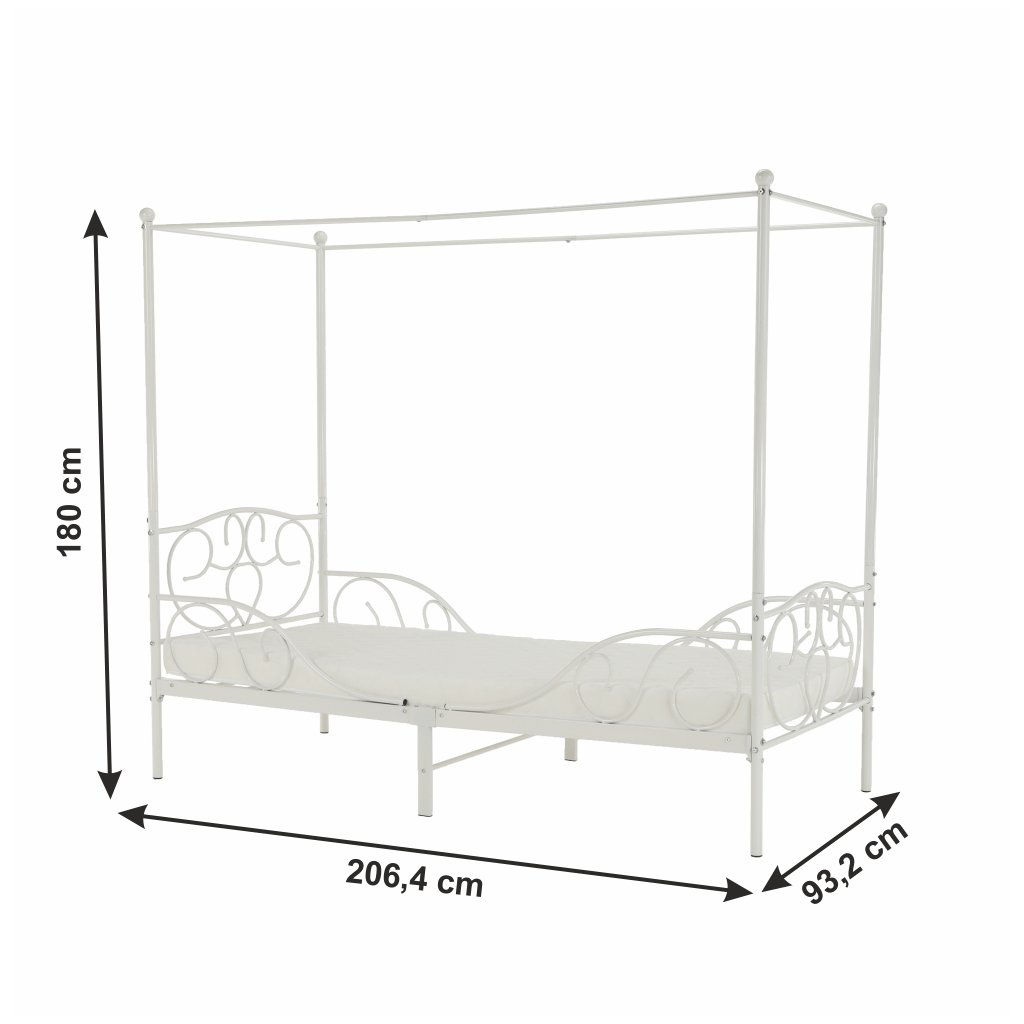 Kovová postel s nebesy, bílá, 90x200, ADELISA