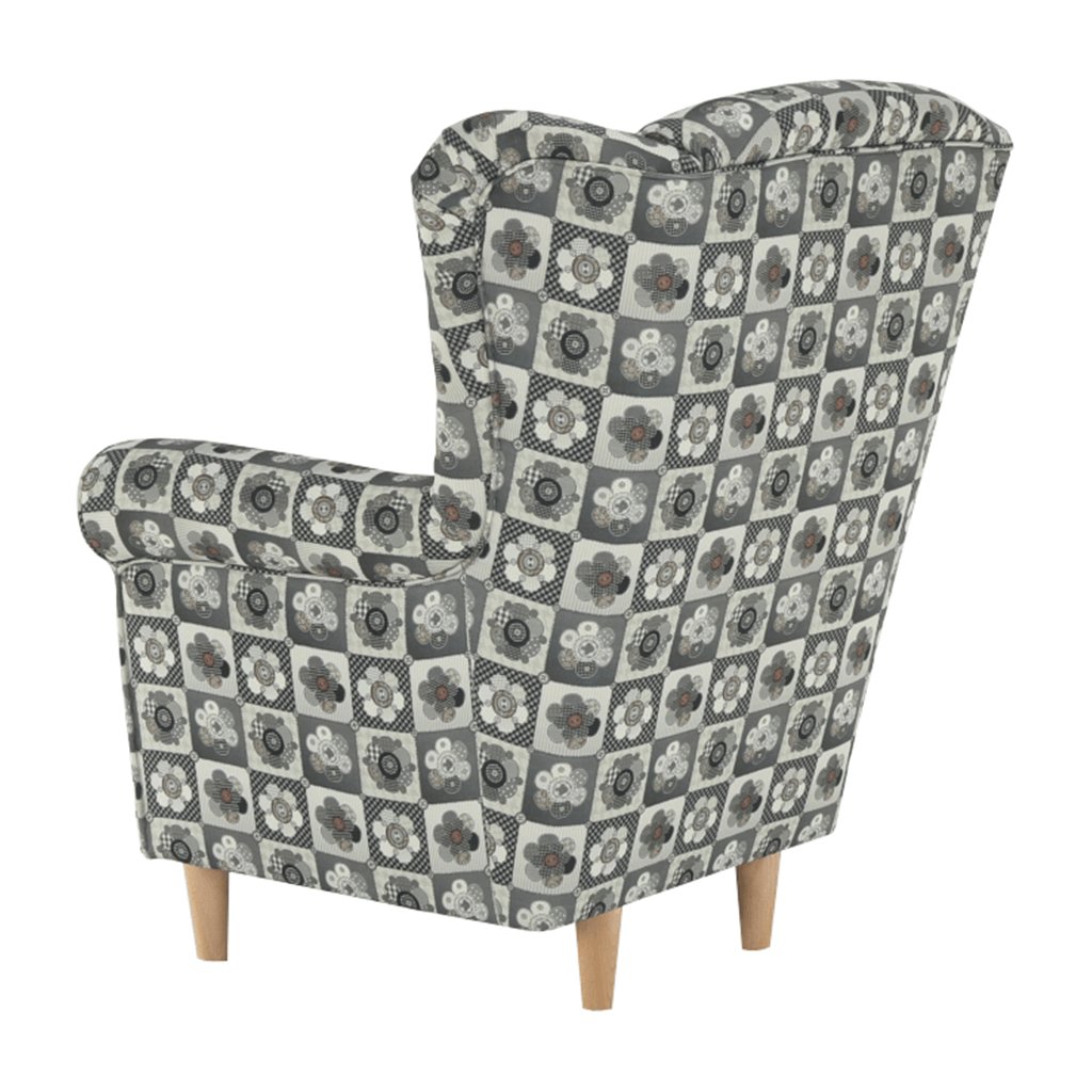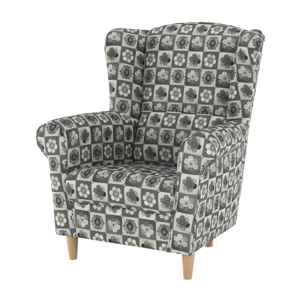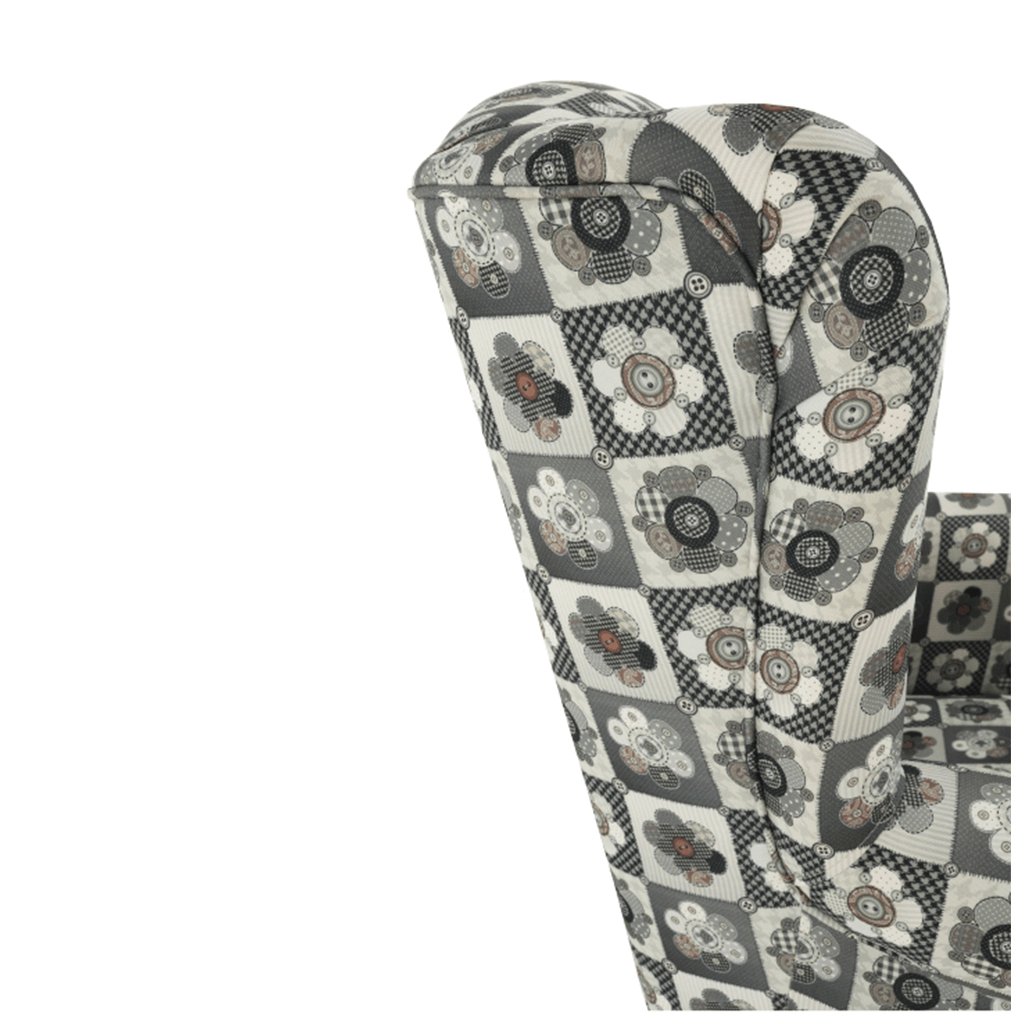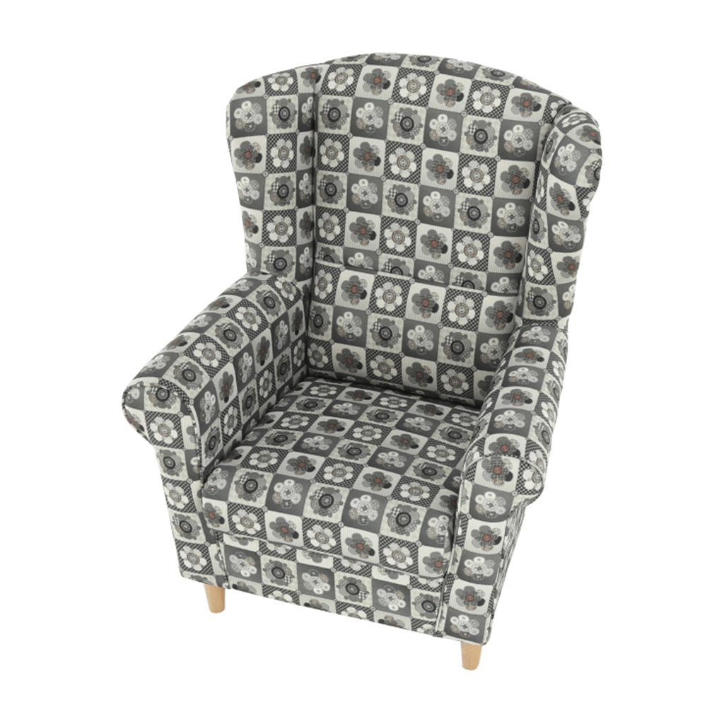 Křeslo barva bílá a hnědá materiál čalounění potah látka patchwork styl ušák.