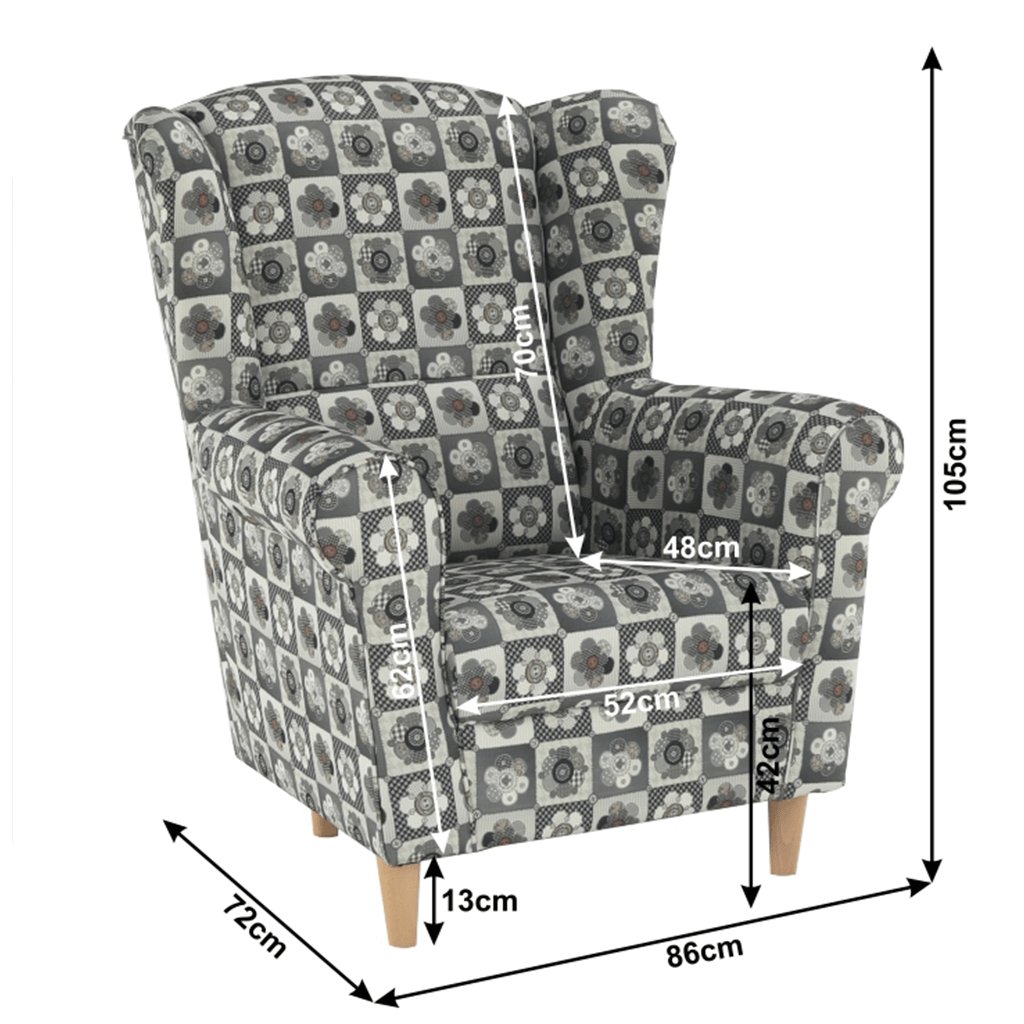 Stylový látkový ušák v hravém patchwork vzoru s hnědými tóny. Jde o pohodlné křeslo s dřevěnýma nohama v dekoru buku. Můžete ho kombinovat s jednobarevnou sedačkou pro vytvoření zajímavého kontrastu. Skvěle poslouží pro příjemné posezení s knížkou. Lze ho využít jako designový prvek v obývacím pokoji i na chatě. Prodává se i ve variantě s taburetem. Materiál sedáku je PUR pěnaT28 (tvrdší). Nosnost 120kg. Dřevěné nožičky v barevném provedení buk. Rozměry (ŠxHxV): 86x82x105 cm Výška sedu: 42 cm Hloubka sedu: 48 cm