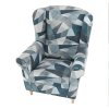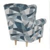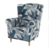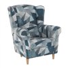 Křeslo barva modrá a šedá materiál dřevo a látka a masiv a čalounění potah látka moderní styl ušák.