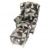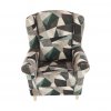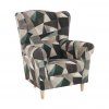 Křeslo barva zelená a hnědá materiál dřevo a látka a masiv a čalounění potah látka moderní styl ušák.