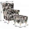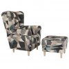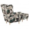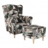 Ušák křeslo s taburetem látka hnědozelená vzor TK131